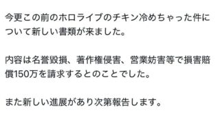 嫌儲 【画像】ホロライブ、チキン冷めちゃったのイラストを描いたオタクを訴える