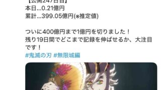 なんG 『鬼滅の刃 無限城編』、ついに興行収入399億になるwww