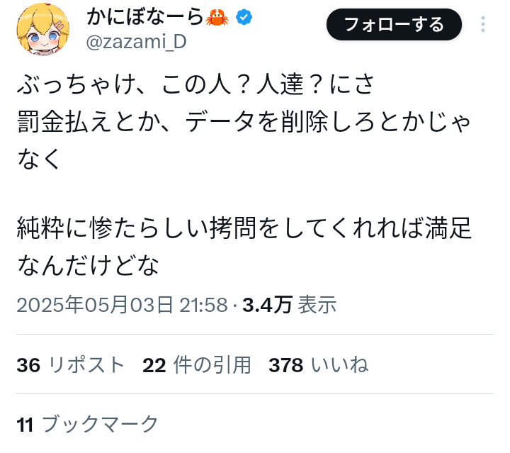絵師界隈は法や他業種・他界隈の権利より上にあるって思っとる奴らばかりやったから - 10 : 2025/05/04(日) 16:17:20.07 ID:6zx7gh/e0