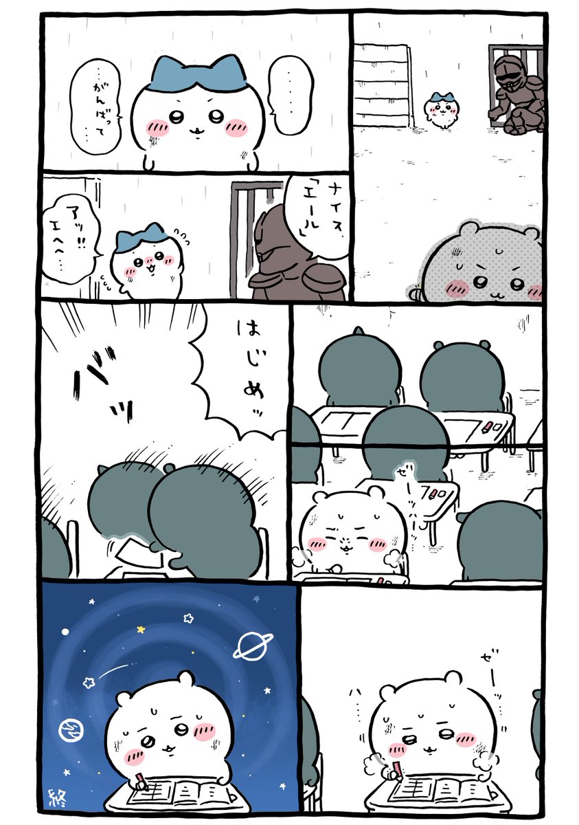 【画像】ちいかわ最新話、奇跡的に試験時間に間に合うも穴脱出の疲労で試験中意識を失いそうになる