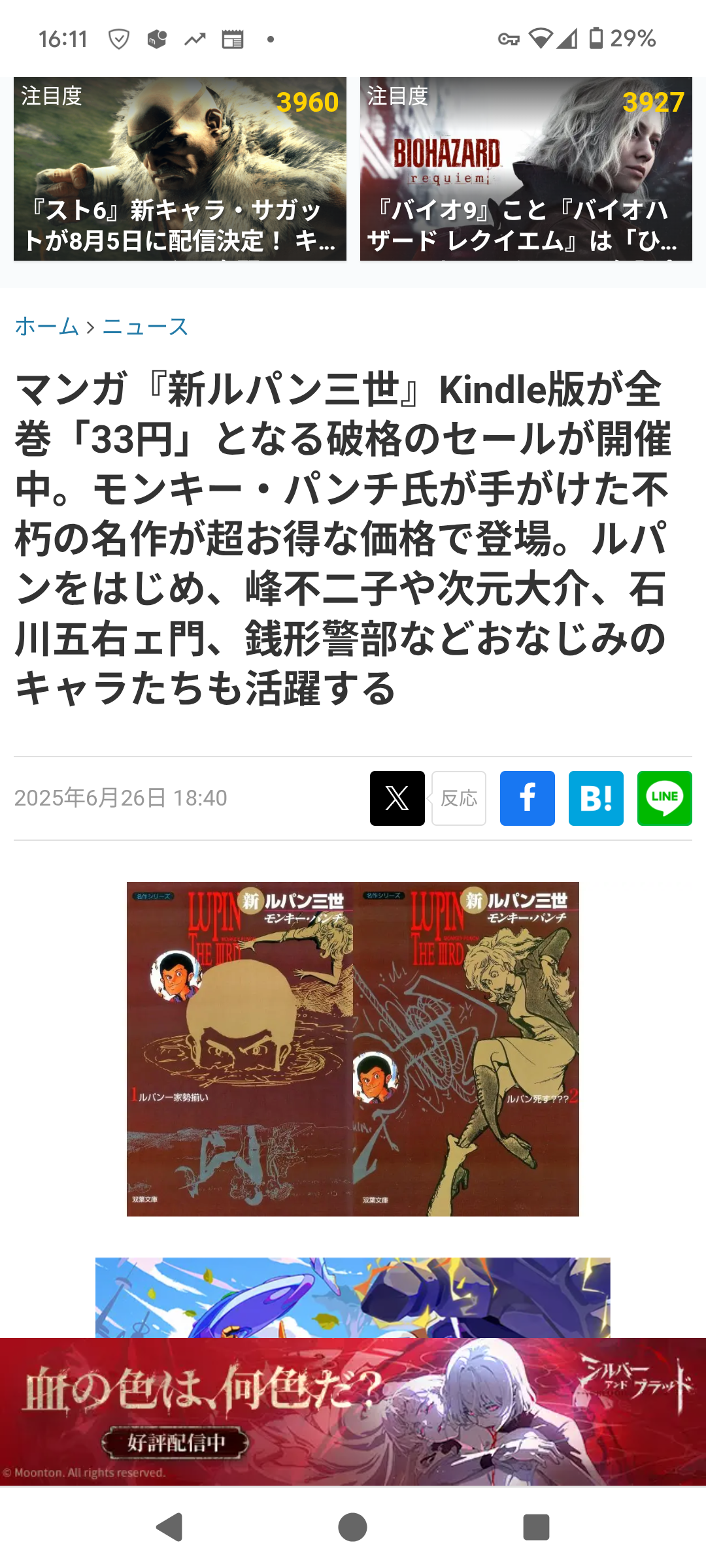 【マンガ】『新ルパン三世』Kindle版が全巻「33円」。全巻買っても396円