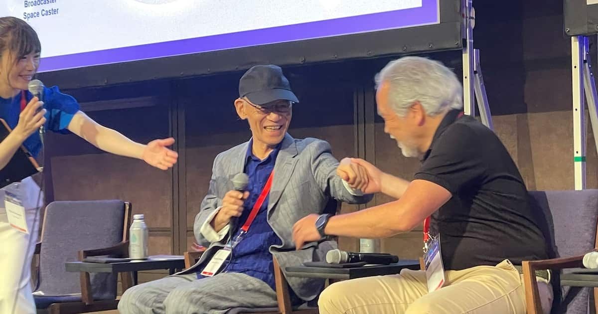 富野氏はイベントで宇宙航空研究開発機構(JAXA)名誉教授の稲谷芳文氏と対談。司会者が「会場に集まった皆様には、子供の頃に富野監督が生み出したガンダムで描かれた『人が宇宙に進出している未来』に憧れて宇宙産業に情熱を燃やしている方が多い。富野チルドレンと言っても過言ではない」と述べ、対談はスタートした。