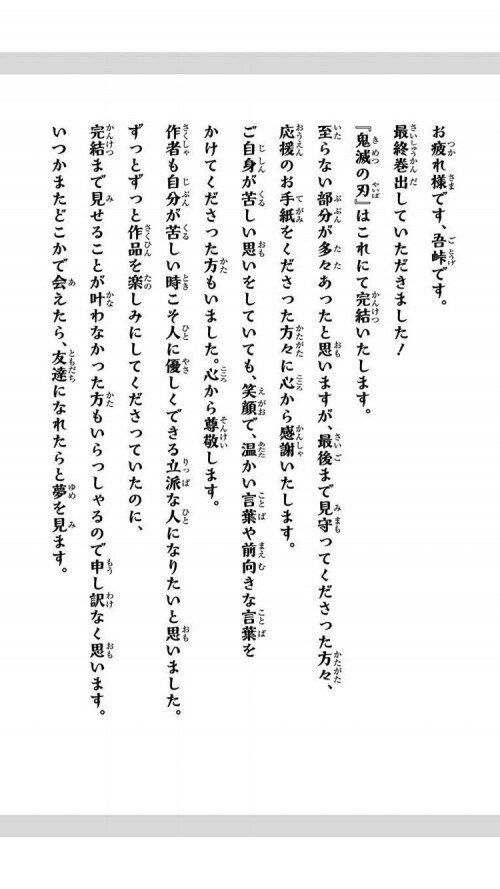 読者にもう命が短くないファンからのお手紙があって鬼滅が短期集中連載で完結したって