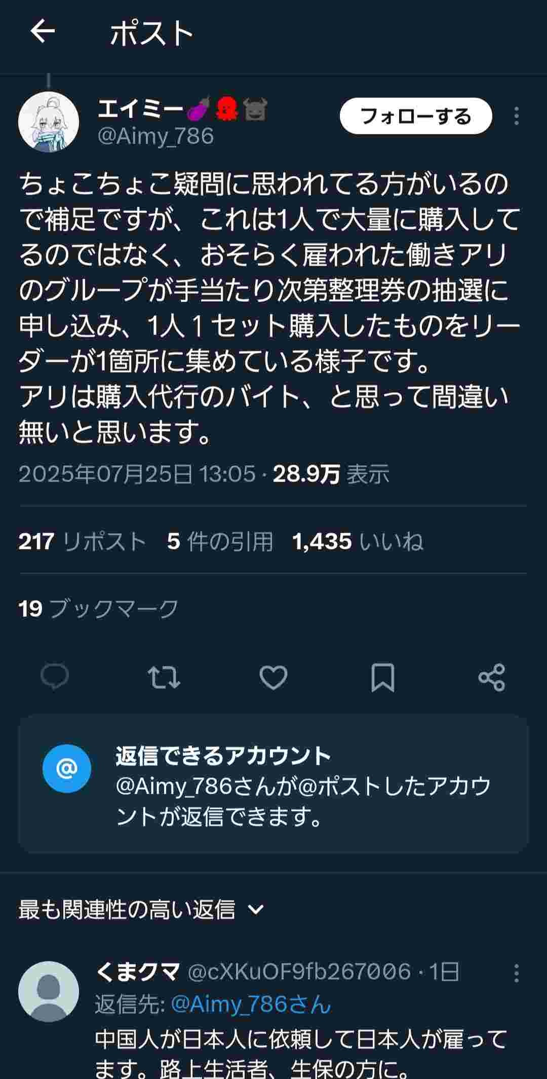 制限されてるからバイトにチマチマ買わせてるって書かれてるじゃん
