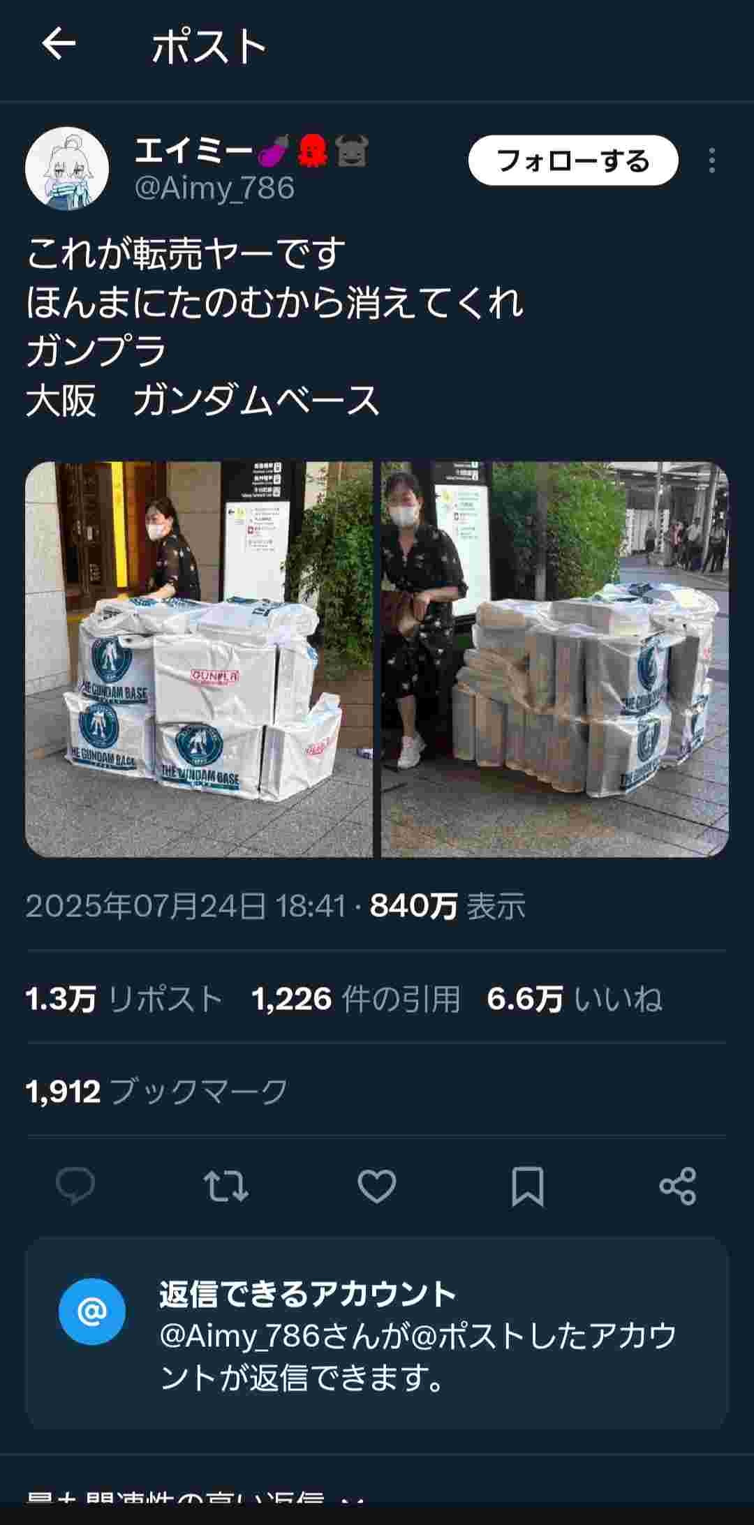 ガンプラの転売で稼げるって情報商材に動かされてるやつがいて