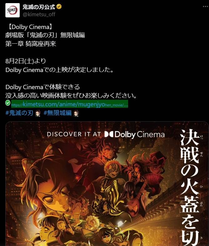 『劇場版「鬼滅の刃」無限城編 第一章』Dolby Cinema版、8月2日から