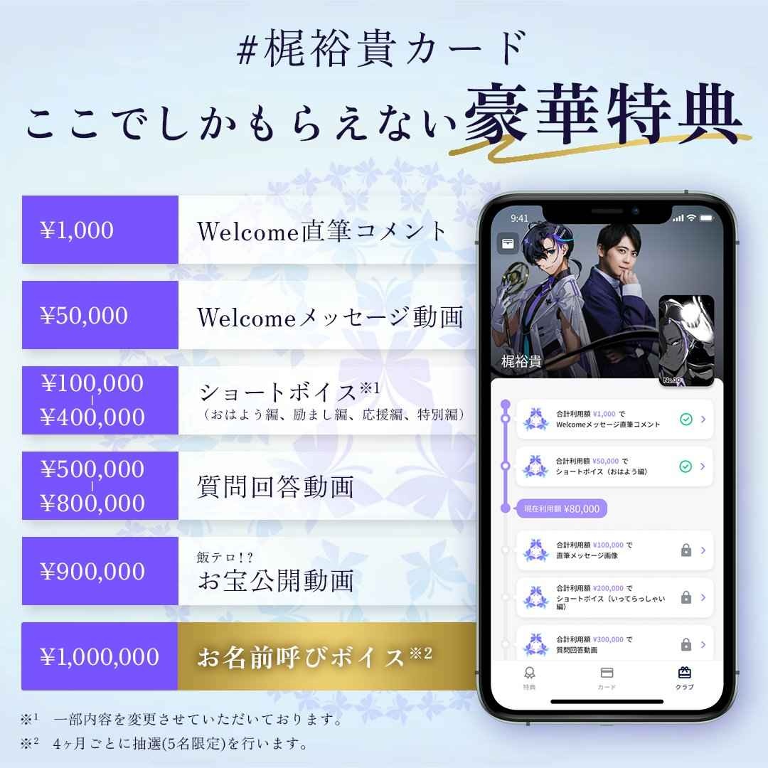 坂倉さんの写真をデザインしたVISAカード。利用額に応じて限定のショート動画や未公開オフショットなどが特別コンテンツが見られたり、坂倉さんが自分の名前を呼んでくれる「お名前呼びボイス」がもらえたりする仕組み。