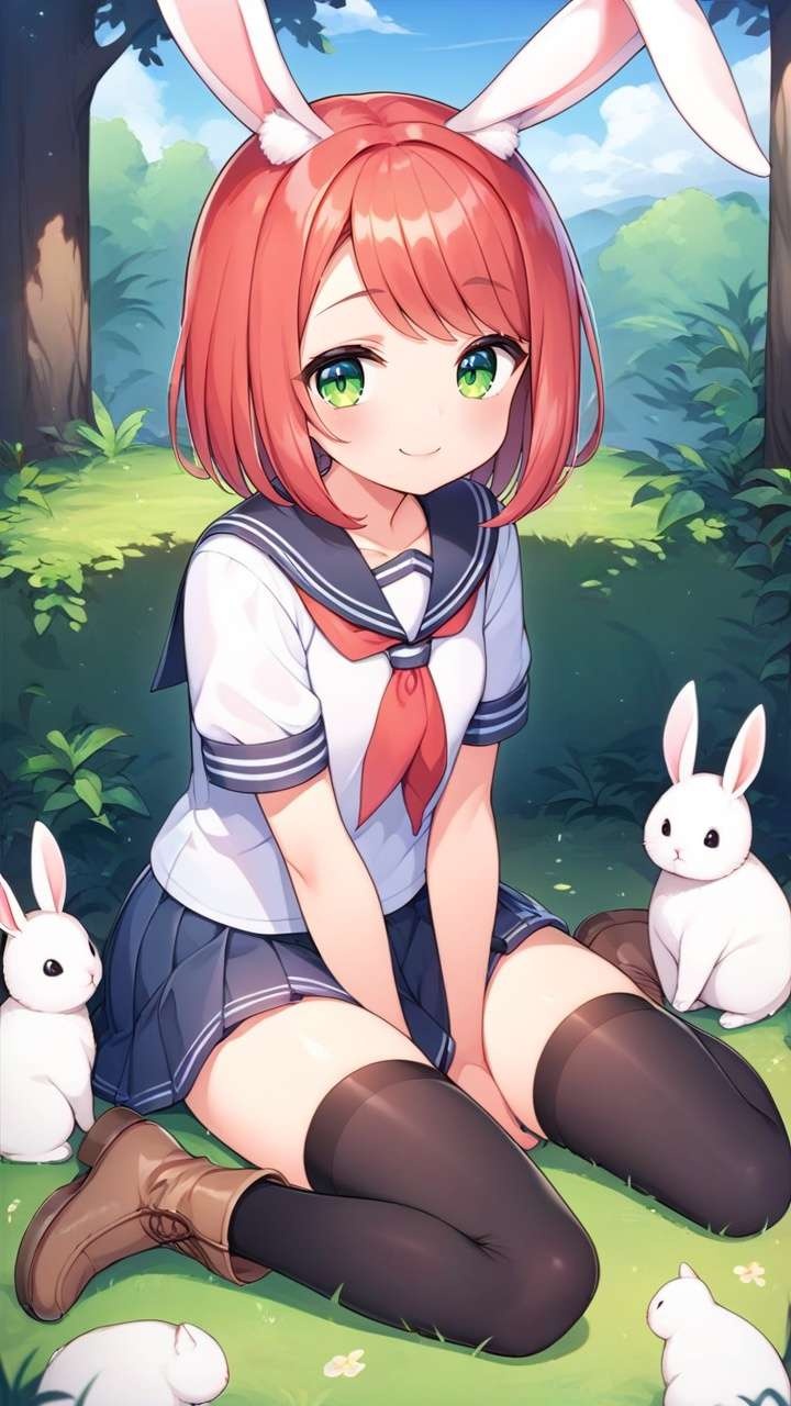 【AIイラスト】ウサギの女の子「メイベルちゃん」達の全裸バージョンを貼るぞ!おぱーい!おへそ!