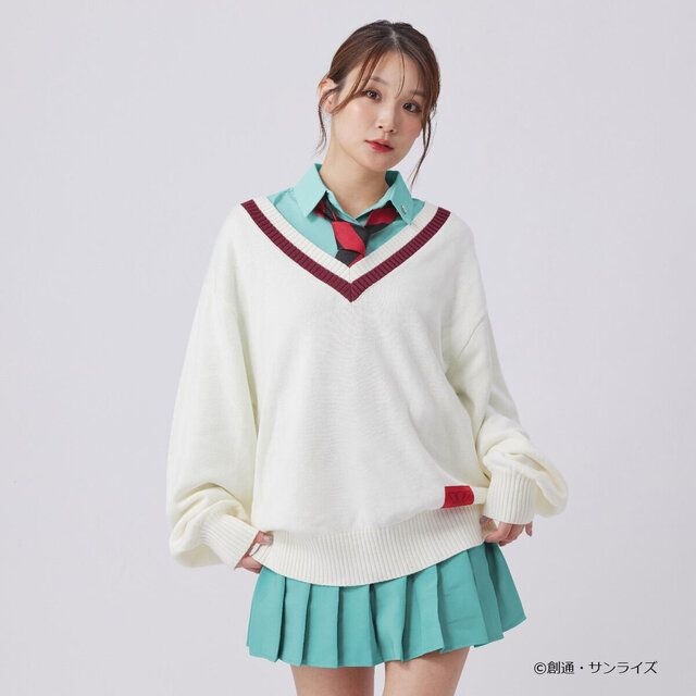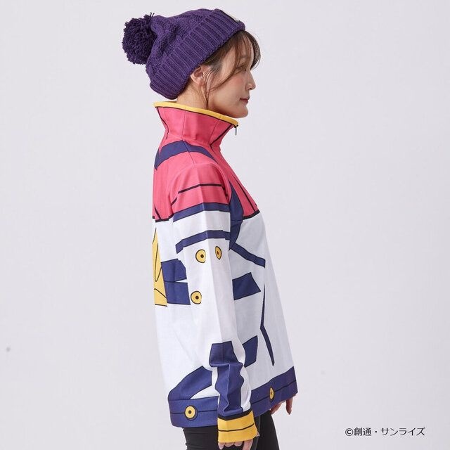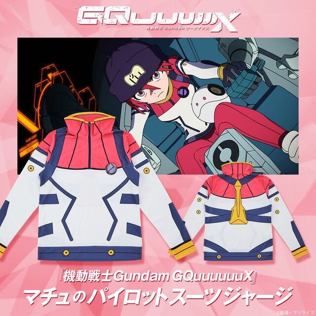 「機動戦士Gundam GQuuuuuuX」より、マチュが制服着用時に着ているニット、マチュが通っているハイバリーハウス学園の校章ピンズ、パイロットスーツをイメージしたジャージの3つが商品化されます。
