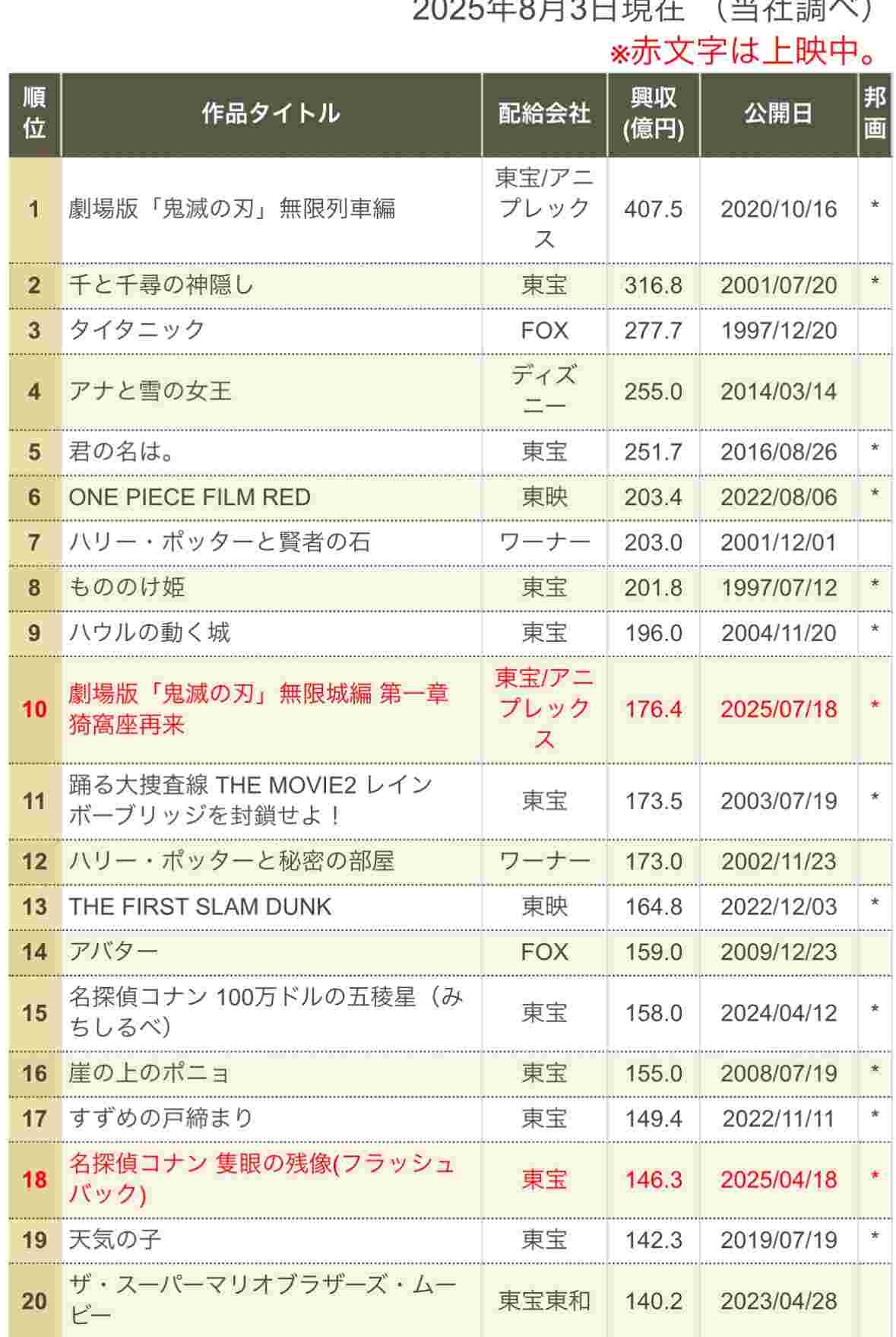 タイタニック強すぎじゃね?