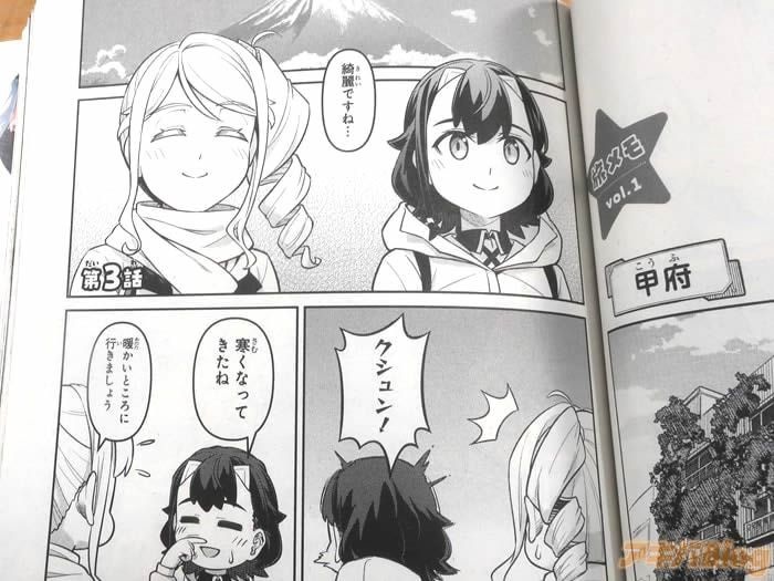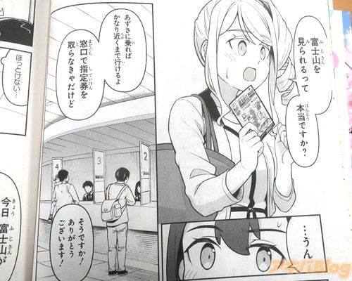 今回発売になった「旅はオールパス」1巻【AA】には、第1話から第10話の「突発!富士山を見る2人旅」1~3、「再会!学校と旅の計画」1・2、「歴史情緒!栃木・足利3人旅」1~5のエピソードを収録し(もくじ)、オビ謳い文句は『日本には、まだ見ぬ“素敵”がいっぱい!』、『女子高生たちが行く!わくわくゆるゆる電車旅漫画!』だった。