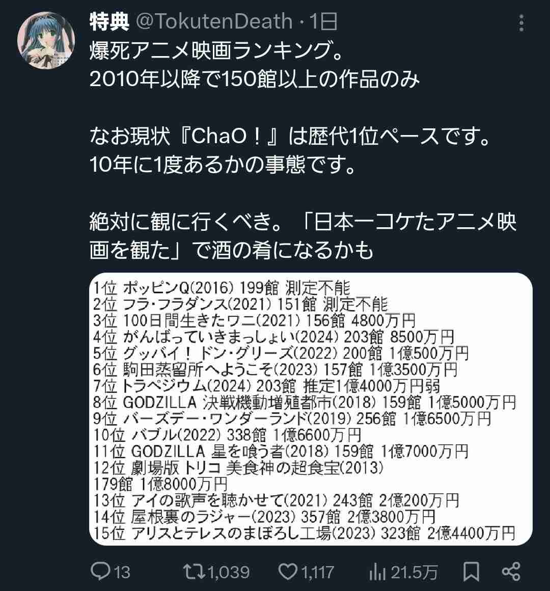 それなら150館以上でやるなんて暴挙に出ないで単館上映するだろ…