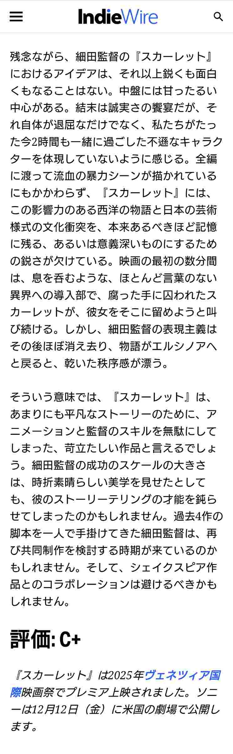 ‘Scarlet’ Review: ‘Belle’ Director Mamoru Hosoda Returns with a Bloody Anime ‘Hamlet’ that Has Nothing to SayOne of Japan’s trendiest auteurs has made another visually impressive but narratively forgettable baroque fantasy.www.indiewire.com
