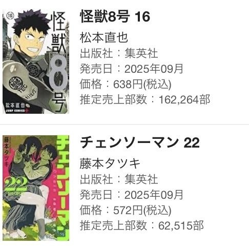 怪獣8号に最終巻補正あるとはいえ2倍どころか3倍近い差あるのヤバいやろ