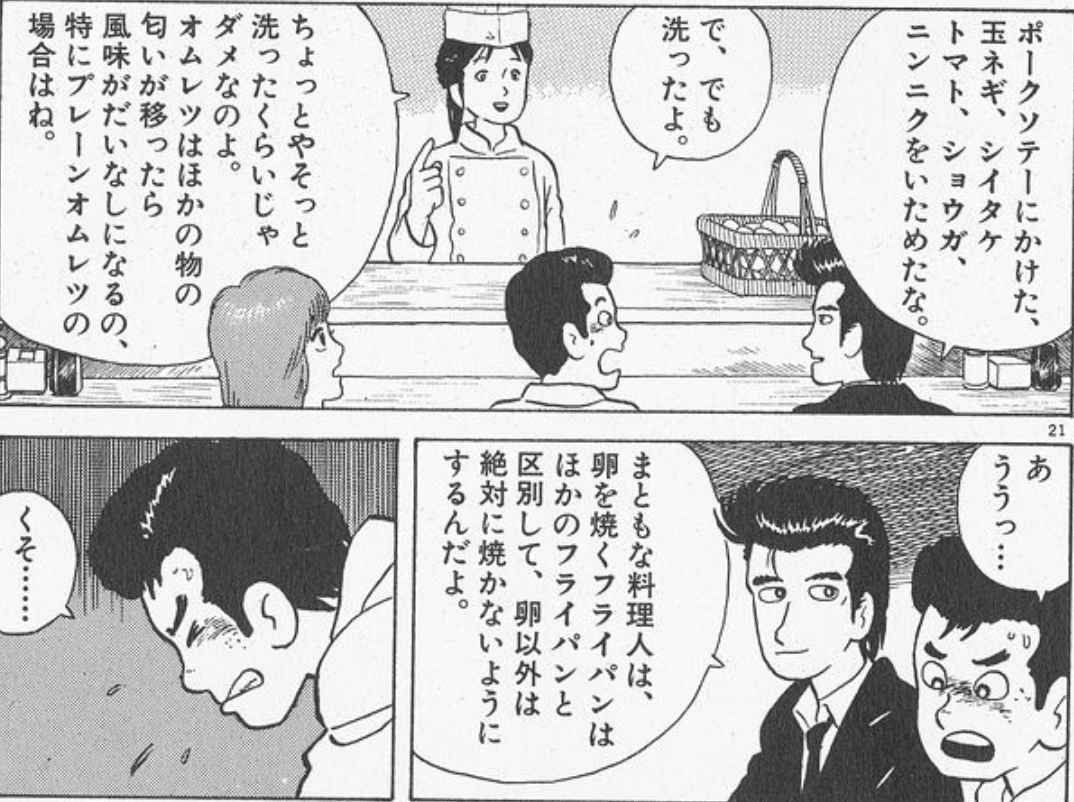 美味しんぼでプロが使ってるのは銅の卵焼き器だろ