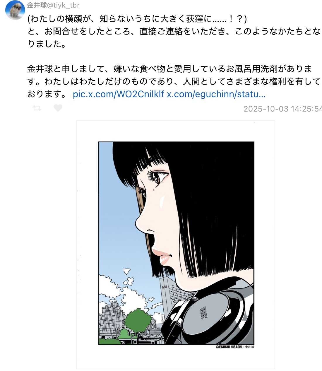 広告掲出後に問い合わせが入り、江口氏は事後的にモデル本人へ使用許諾を得たという。本人コメントは事態は丸く収まったかのような口ぶりで、謝罪や経緯の詳細説明はなく、「SNS写真の無断商用利用」と「創作活動におけるトレースの是非」をめぐり議論が広がっている