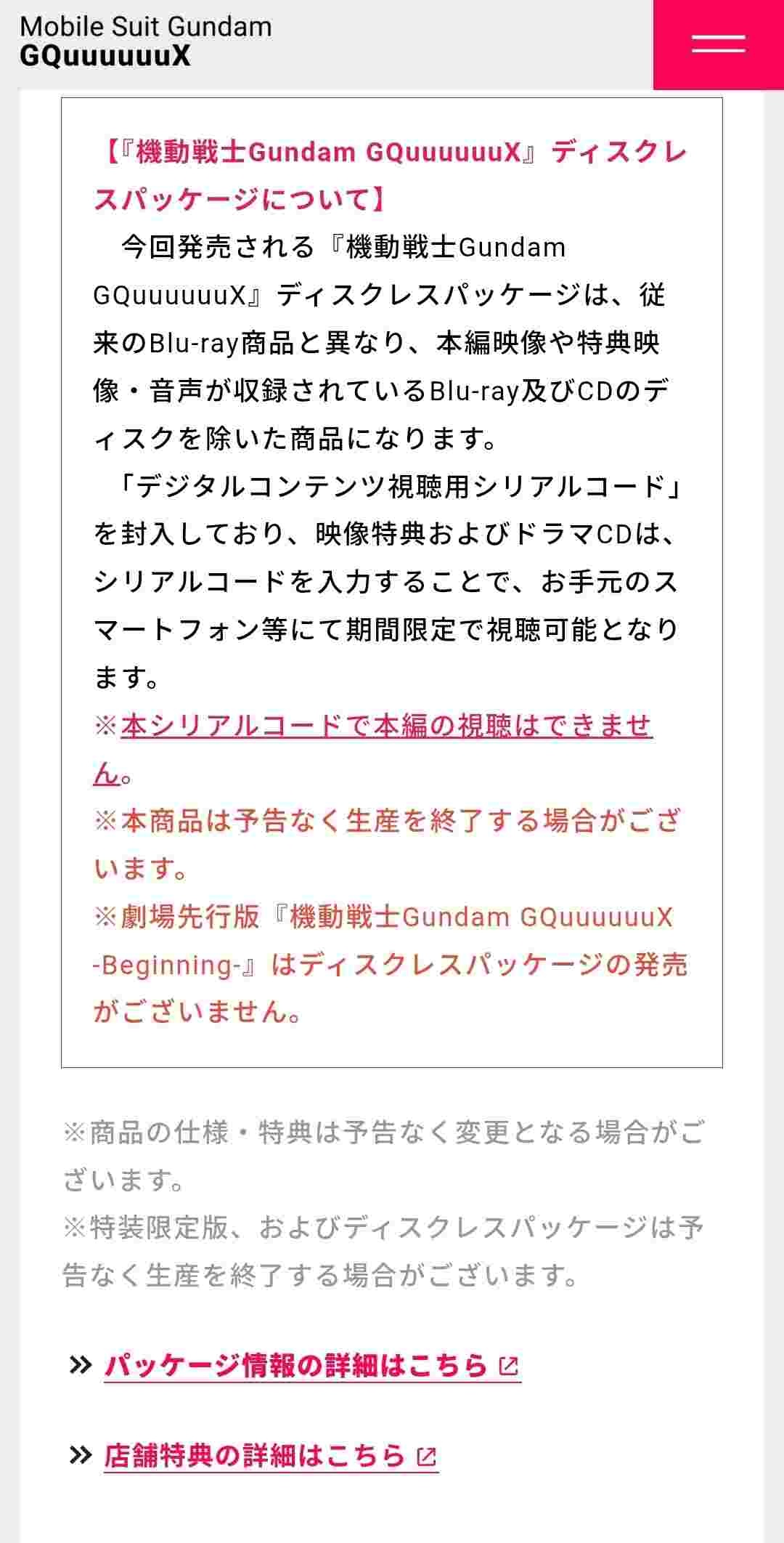 TVアニメ『機動戦士Gundam GQuuuuuuX』は“ディスクレスパッケージ”も!