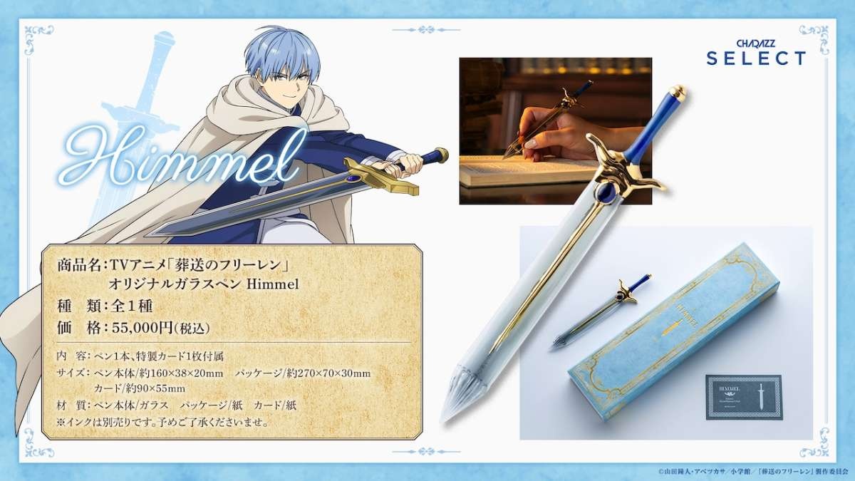 山田鐘人・アベツカサ原作によるTVアニメ「葬送のフリーレン」に登場するフリーレンの杖、ヒンメルの剣を模したガラスペンが発売される。価格はそれぞれ税込5万5000円。