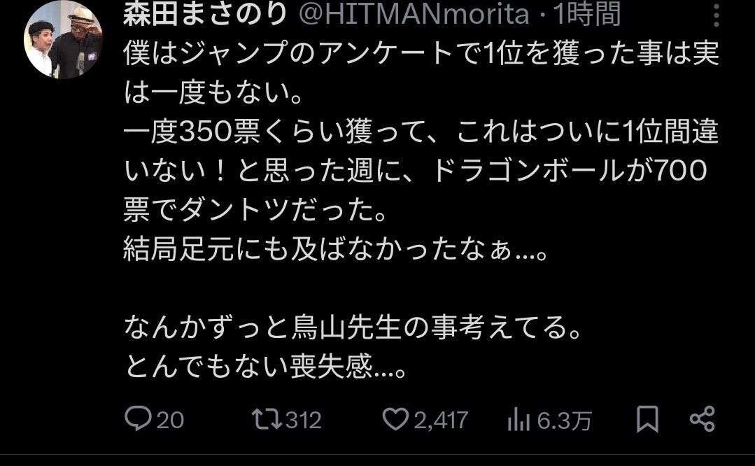 ドラゴンボールの時代でも350票で1位取れると思えるのか