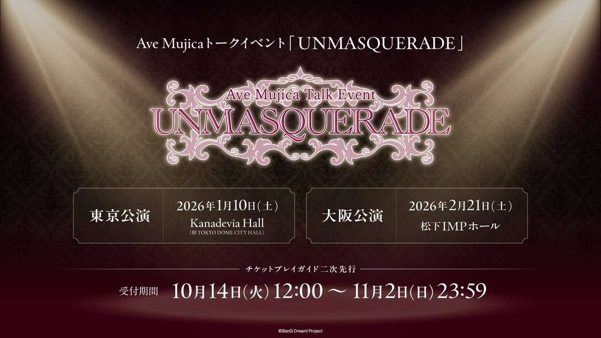 Ave Mujica トークイベント「UNMASQUERADE」東京 2026.1.10、大阪 2.2