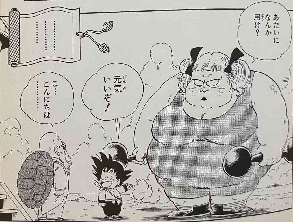 悟空が亀仙人の所に連れてきた女子プロレスラーみたいなやつ、