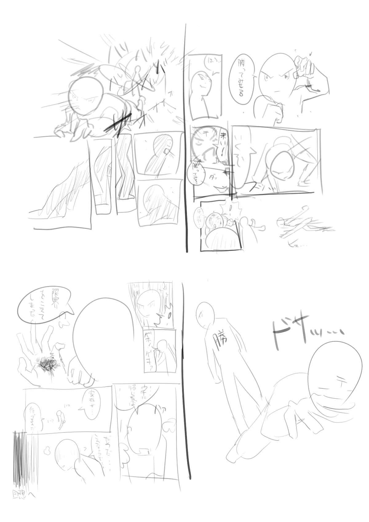 まずコマ割を考えずに同じ大きさのコマ2✕3だけで今まで通りストーリーをなぞったラフを描く