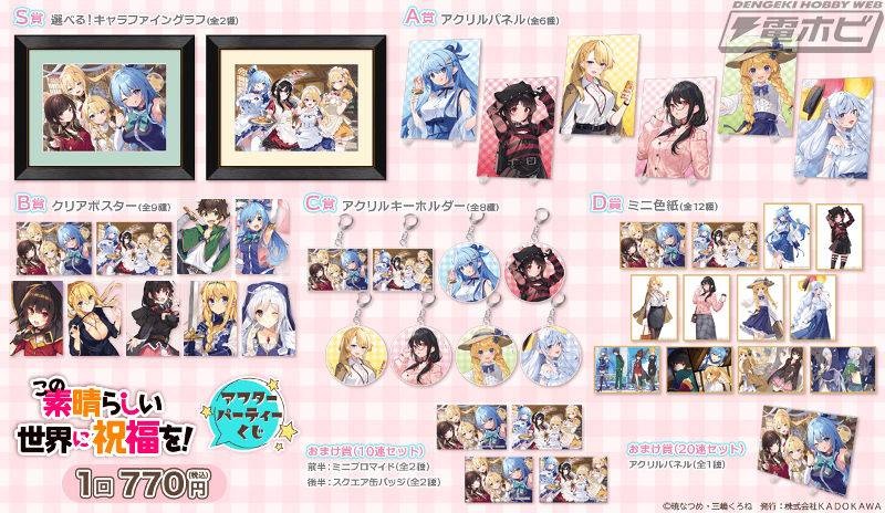 KADOKAWAが運営するオンラインくじサービス「くじ引き堂」に、『この素晴らしい世界に祝福を!』のオリジナル商品が手に入る「『この素晴らしい世界に祝福を!』アフターパーティーくじ」が登場! 2025年11月25日(火)12時より販売開始です。