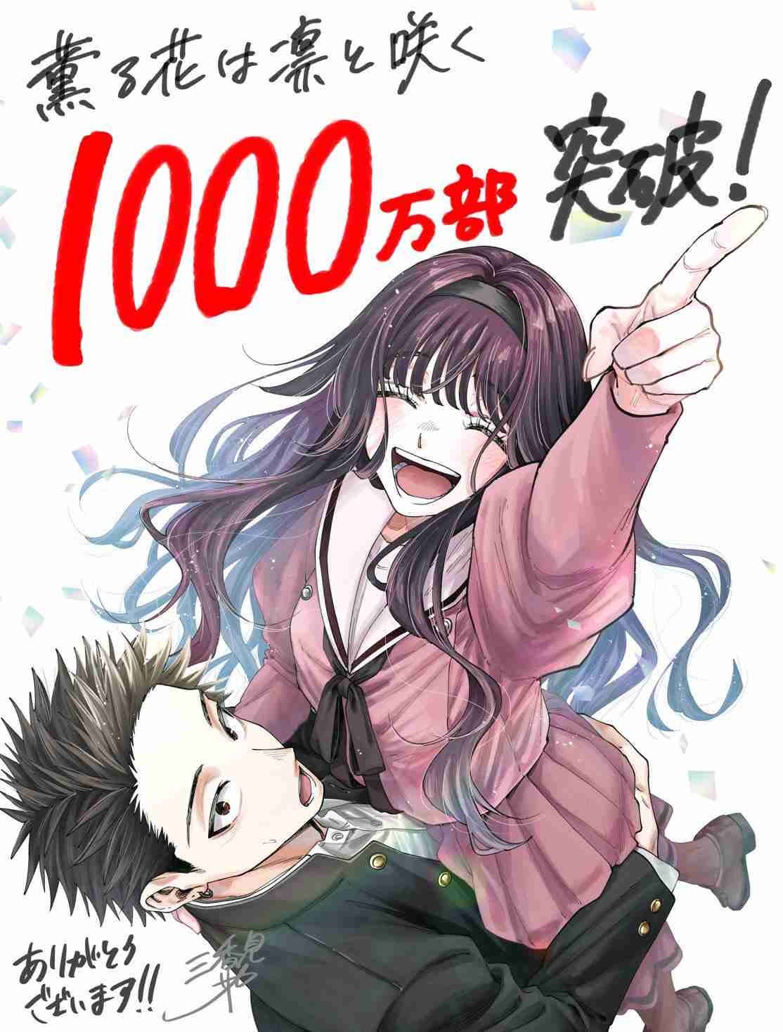 12月8日、漫画『薫る花は凛と咲く』の公式Xより、同作が累計1000万部を突破したことが作者・三香見サカ氏のイラストとともに発表された。