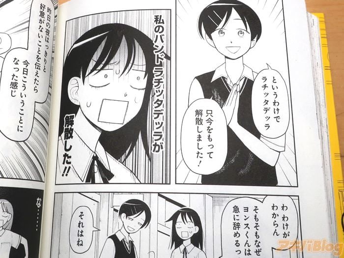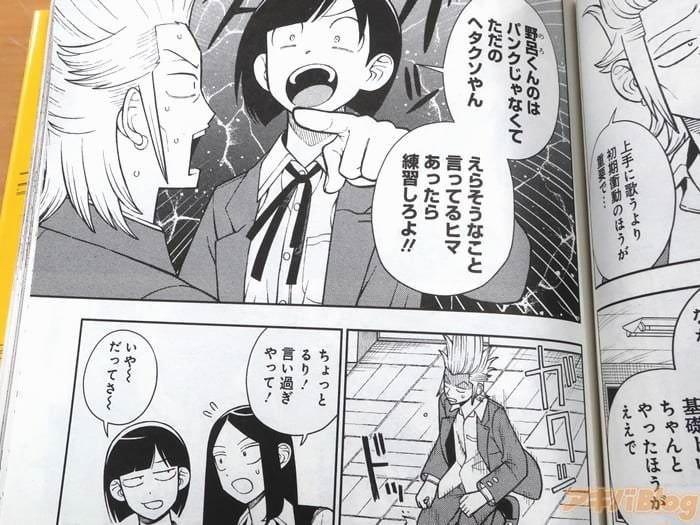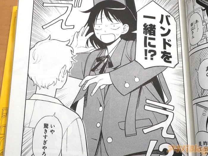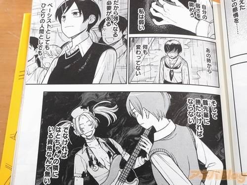 今回発売になったコミックス「ふつうの軽音部」1巻【AA】には第1話~第12話と番外編「友達を作る」を収録(もくじ)し、オビ謳い文句は『このマンガ、全然「ふつう」じゃない!』で、裏表紙は『超等身大のむきだし青春&音楽奮闘ドラマ、開幕!』だった。