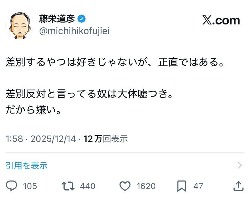 つまりこの漫画家は差別主義者ってことね
