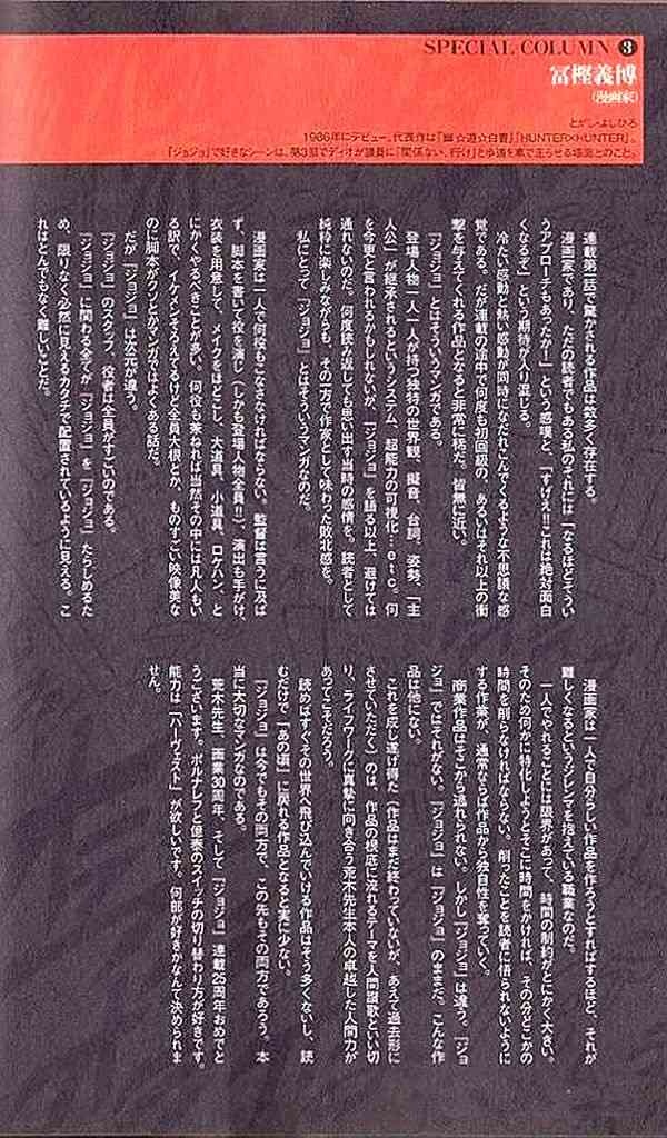 ハンターハンター冨樫義博「ジョジョは全てが独創的。次元が違う。読んで敗北感を味わった」