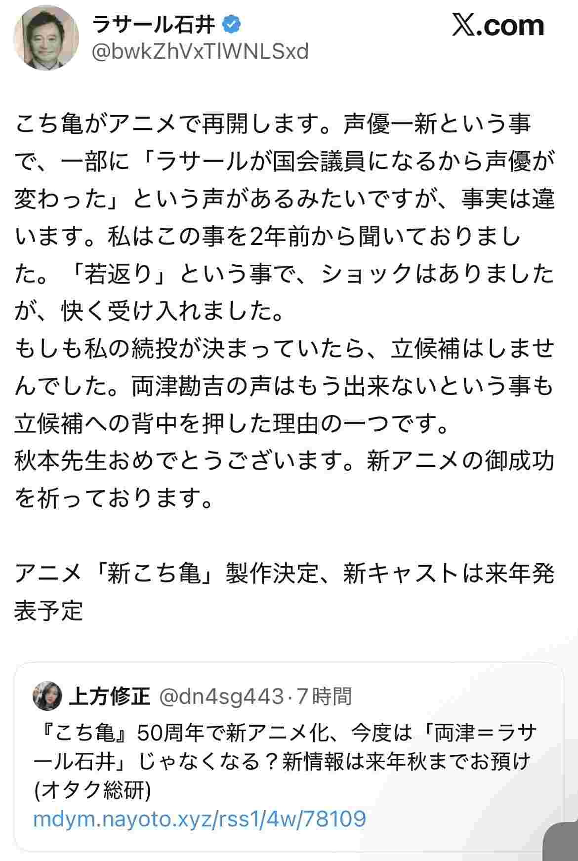 言ってる事がメチャクチャなんだが続投ならば政治家にならなかった両津の声はもう出せない
