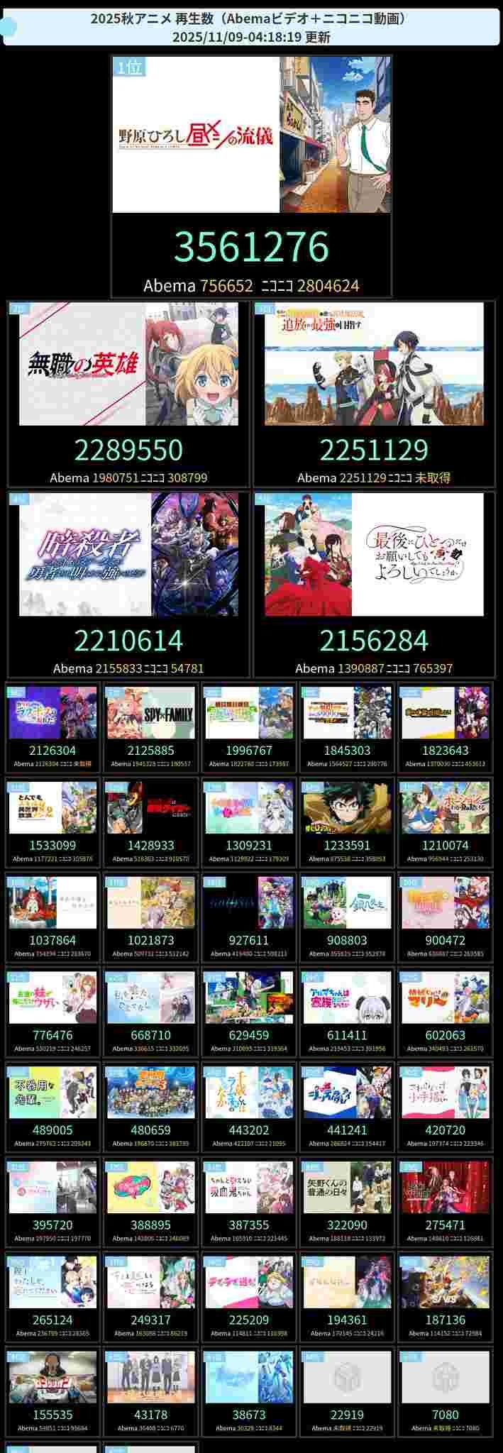 ひろしとスパイファミリー以外は11位まで全部異世界アニメなの、日本やべーなあ