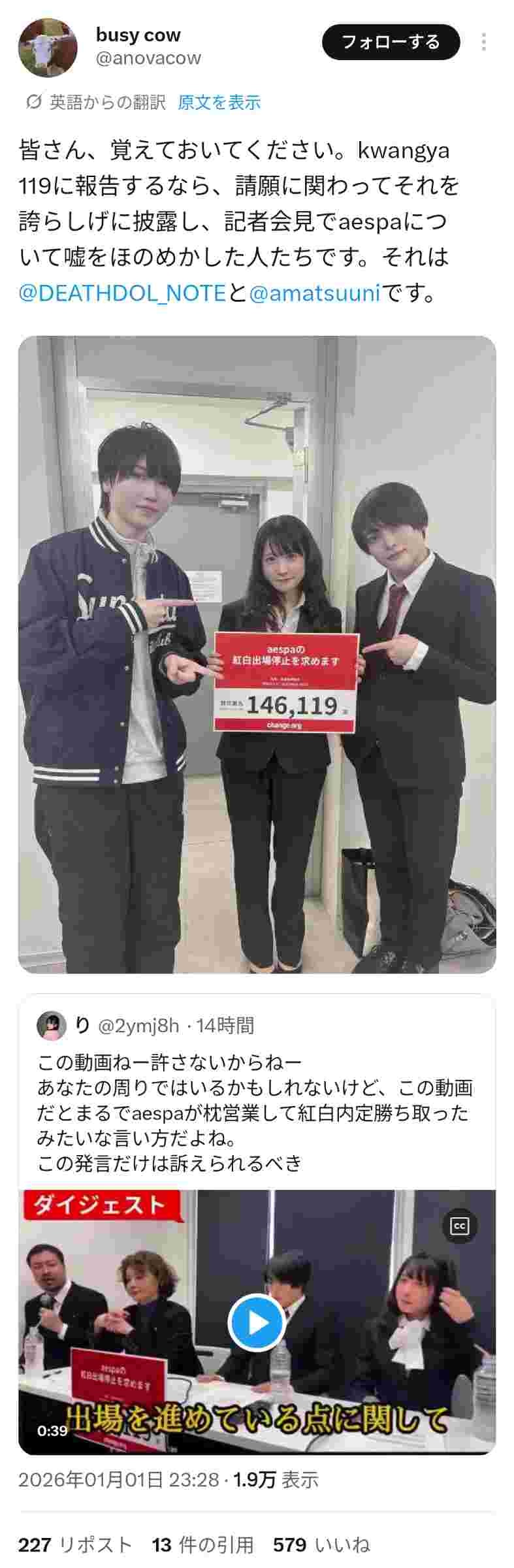 各国のaespaファンが総攻撃を指示、大炎上中