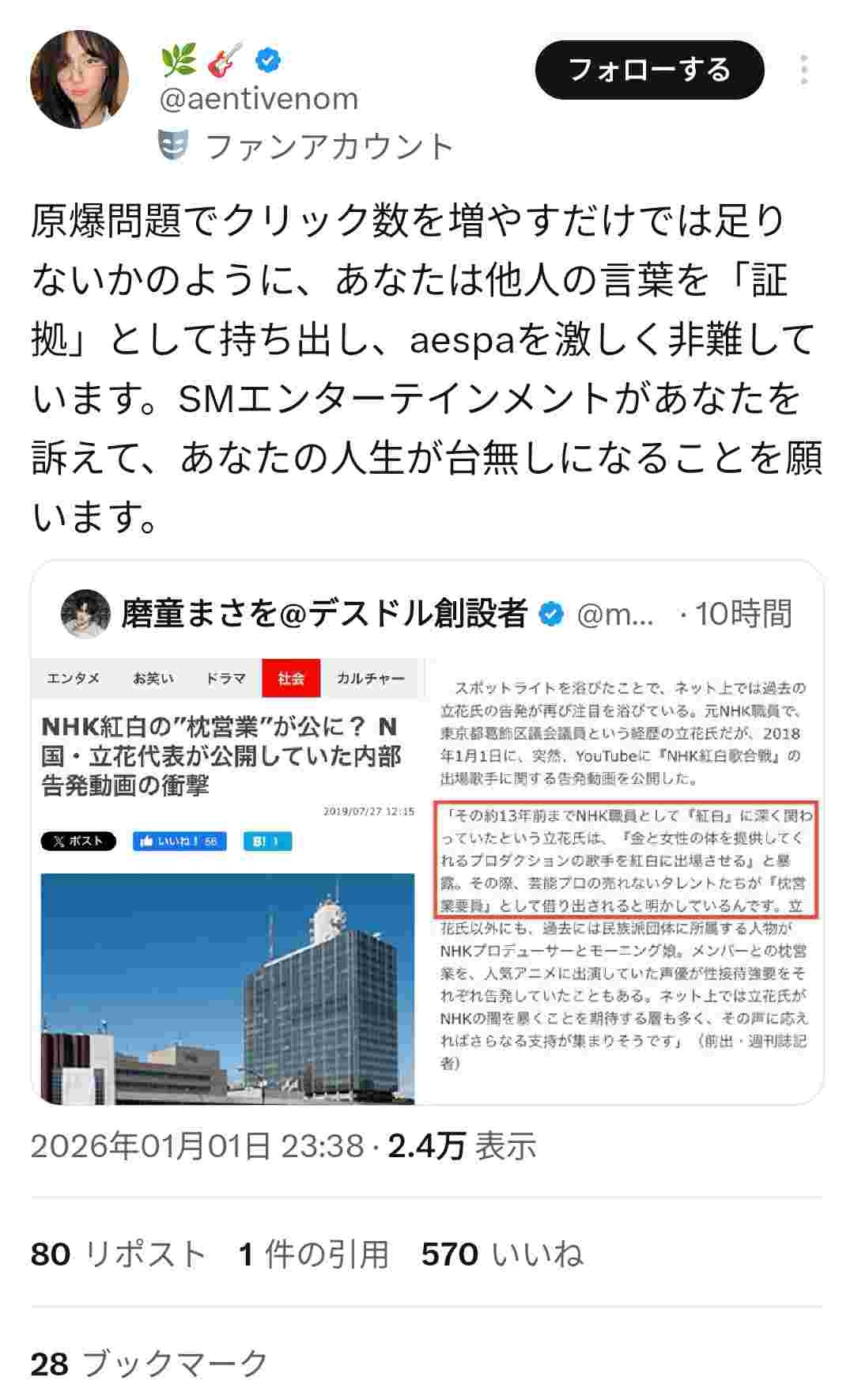 aespaファンが激怒し世界のaespaファンに発信