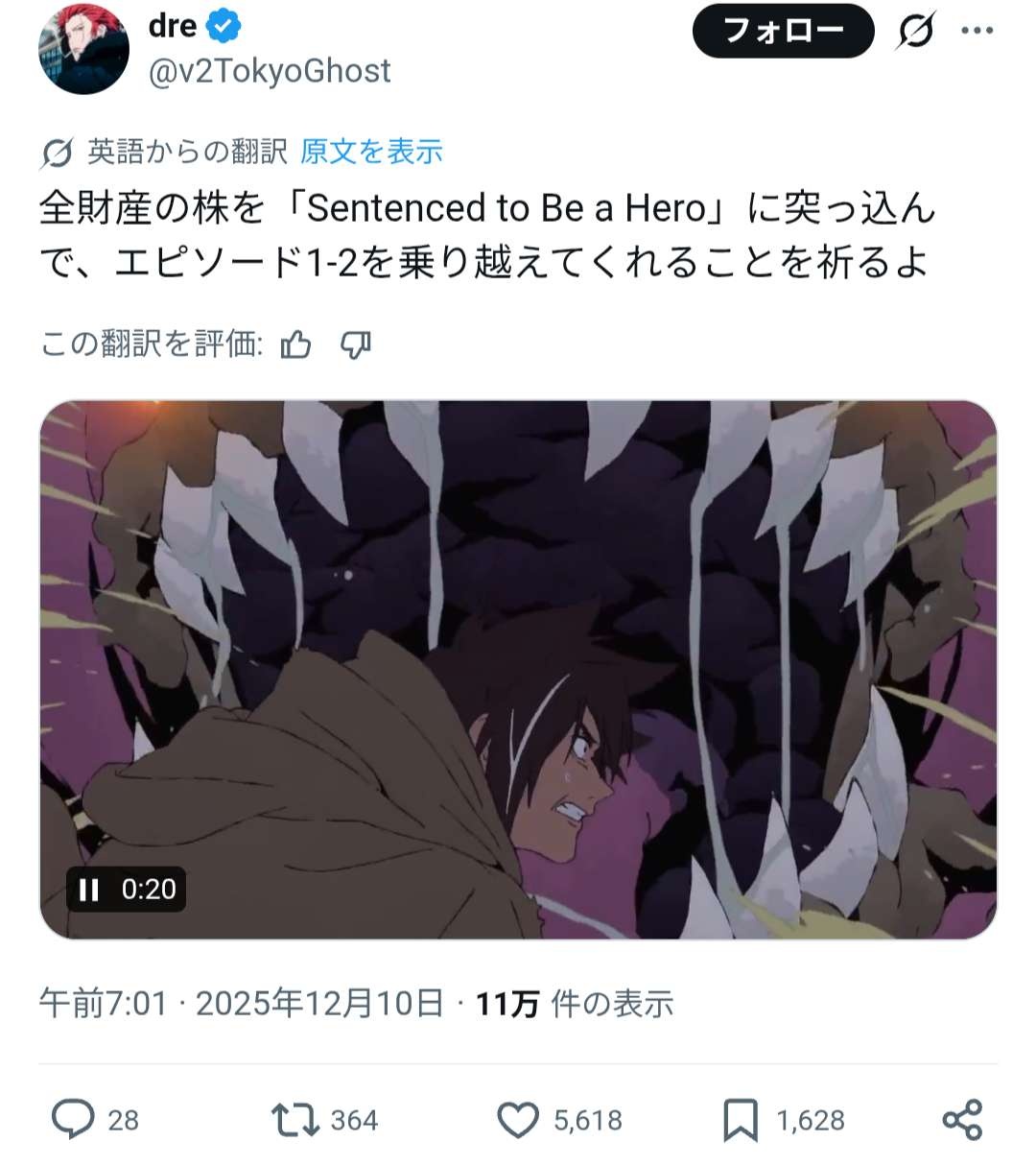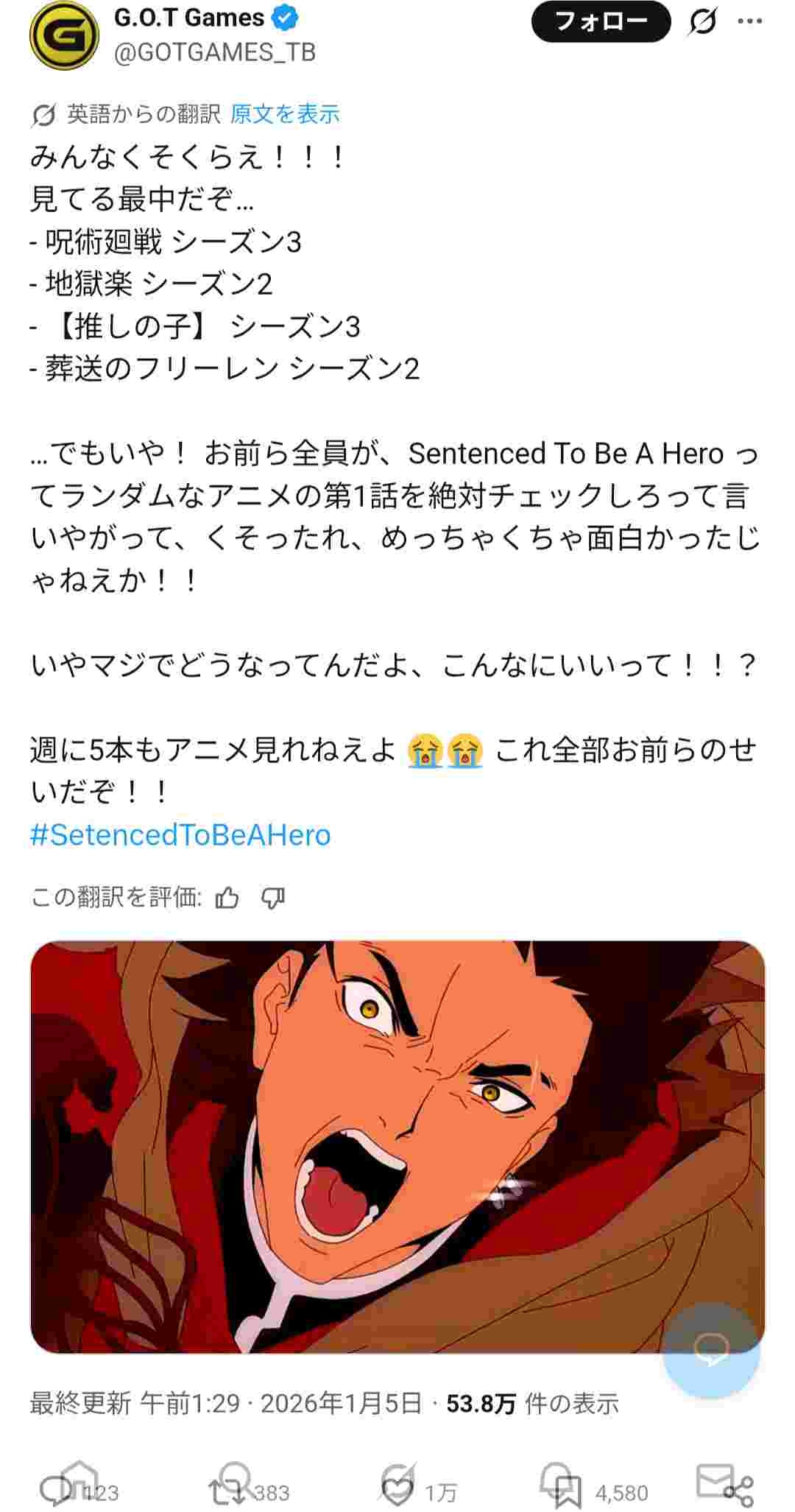 お前ら全員が、Sentenced To Be A Hero ってランダムなアニメの第1話を絶対チェックしろって言いやがって、くそったれ、めっちゃくちゃ面白かったじゃねえか!!