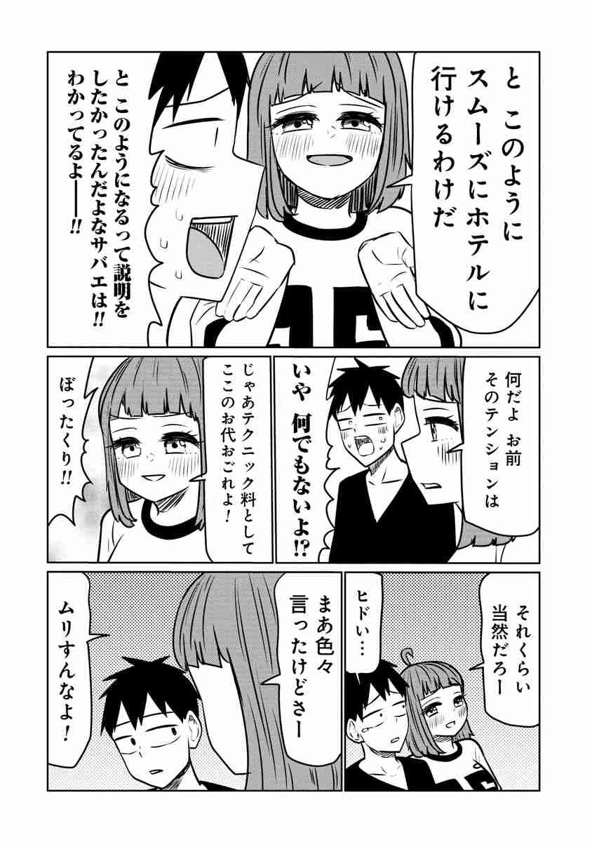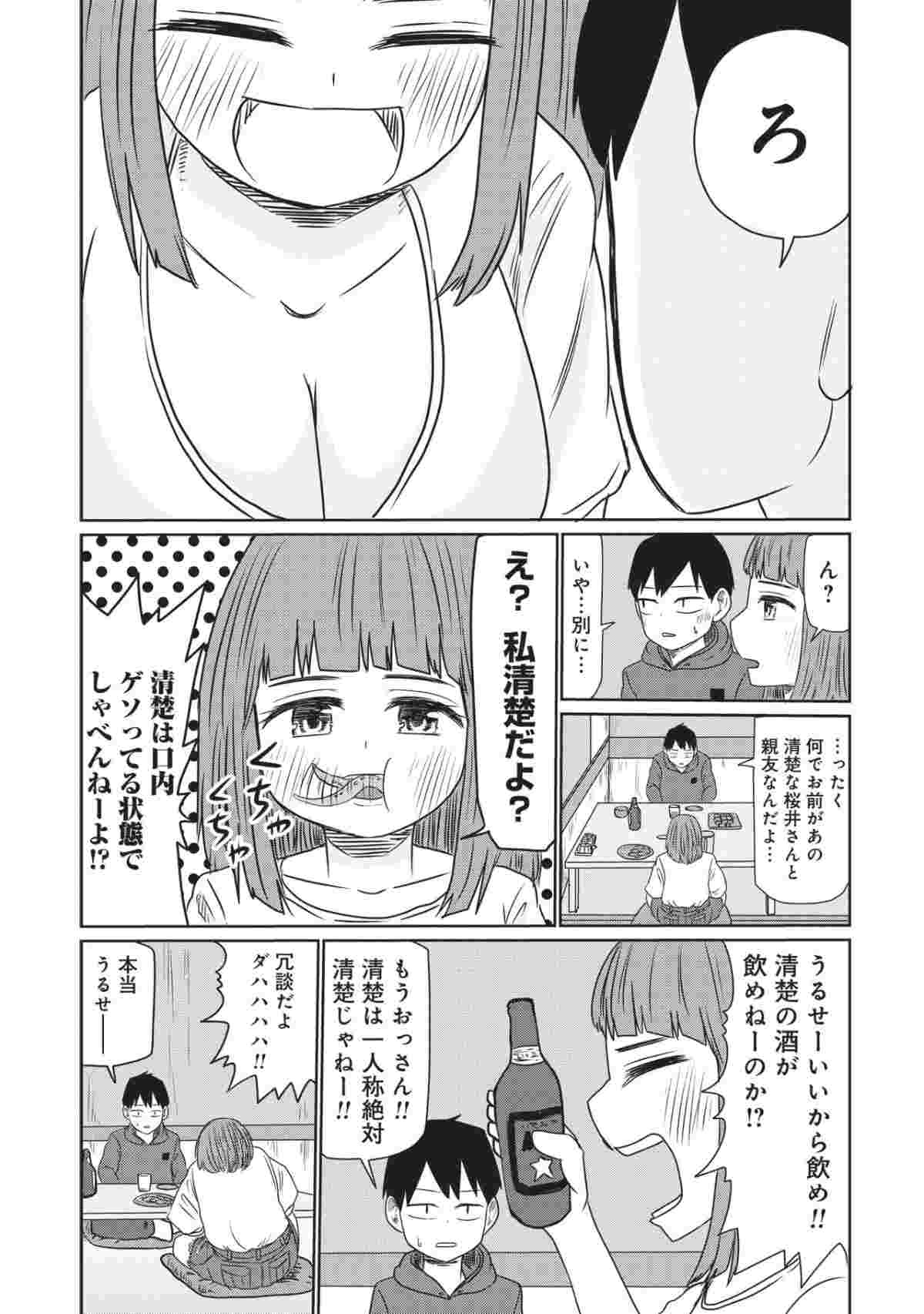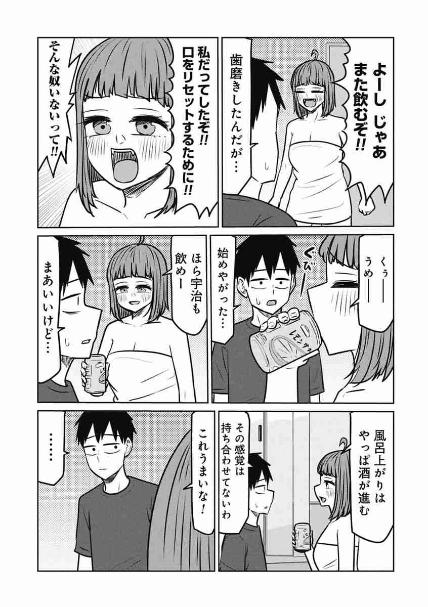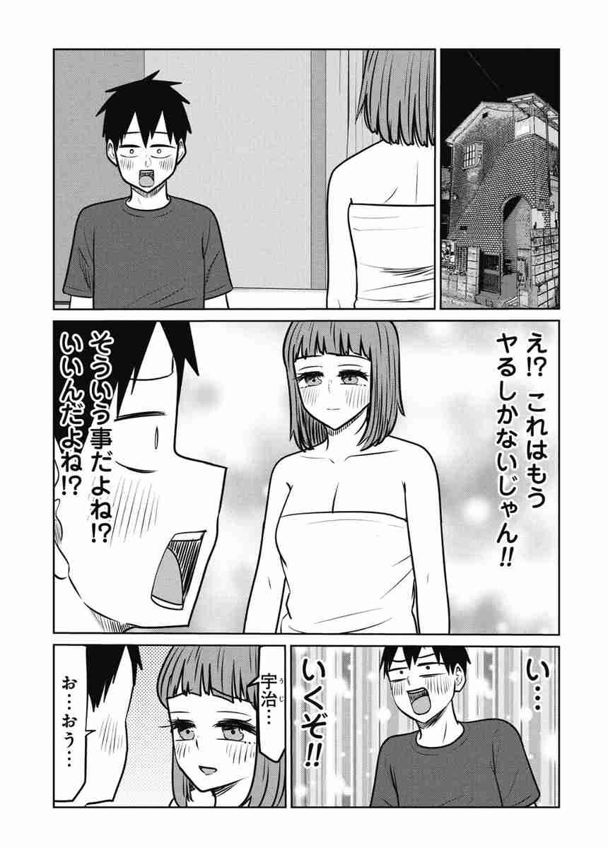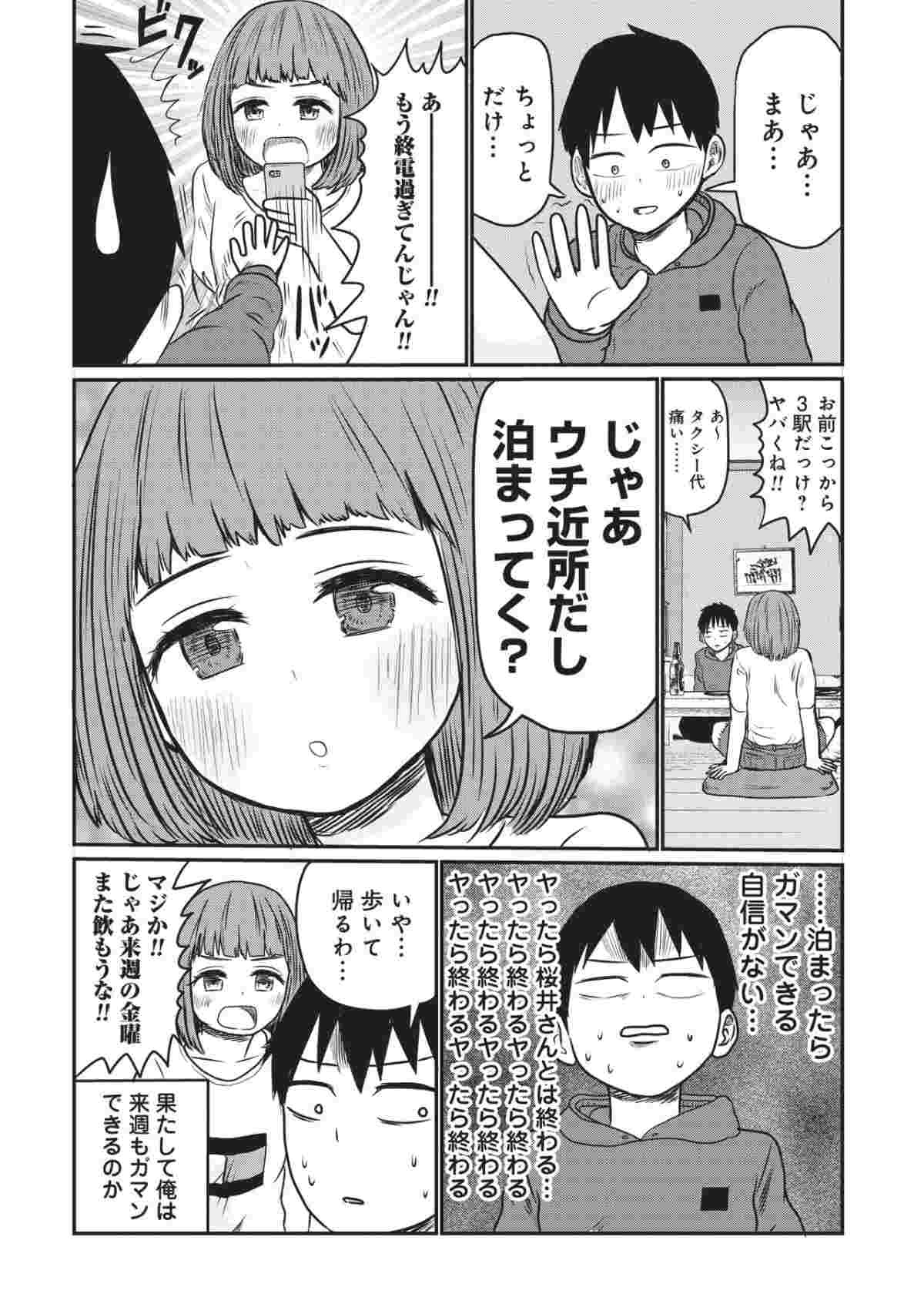 おっさんのような鯖江だが、なにかと女の色気を武器に宇治をからかってきて……。友情を取るか性欲を取るか、理性と本能の間で揺れる宇治が描かれる。なお単行本にはくらげバンチ(新潮社)での連載分に加え、描き下ろしのエピソード4本も収録された。