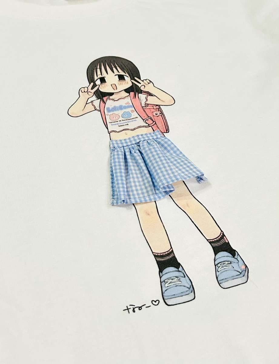 こちら風に揺れるギンガムチェックのスカートが可愛い、幼なのこTシャツを作らせて頂きました