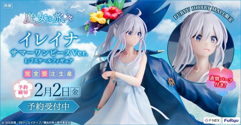 TVアニメ『魔女の旅々』より、2022年8月に発売された「イレイナ サマーワンピースVer. 1/7スケールフィギュア」が再販! フリューが運営するホビーEC サイト「FURYU HOBBY MALL」にて、2023年12月8日(金)から予約開始!