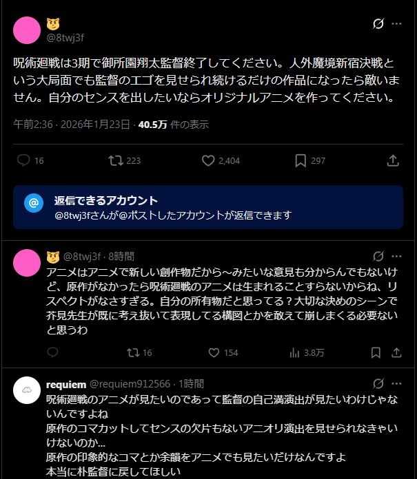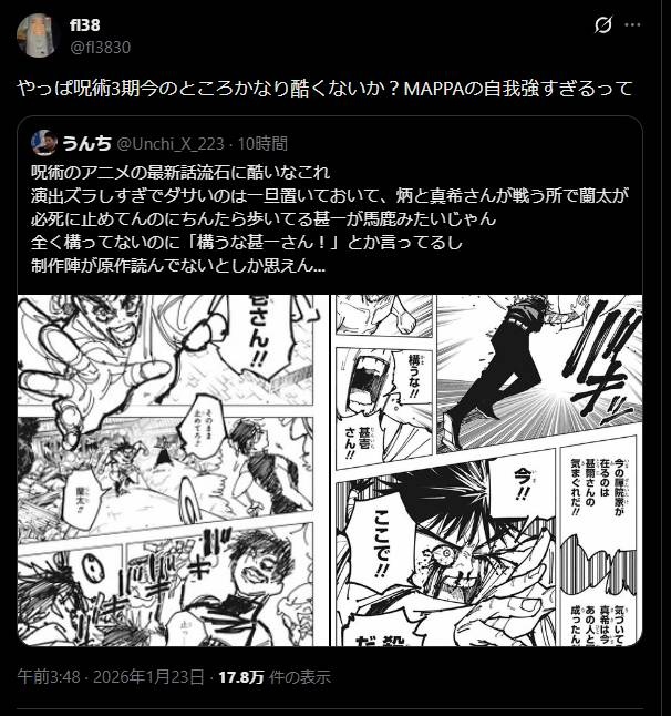 アニメは知らんが渋谷事変終わった後の原作はウ●コなんで脚本レベルから変えたほうがええやろ