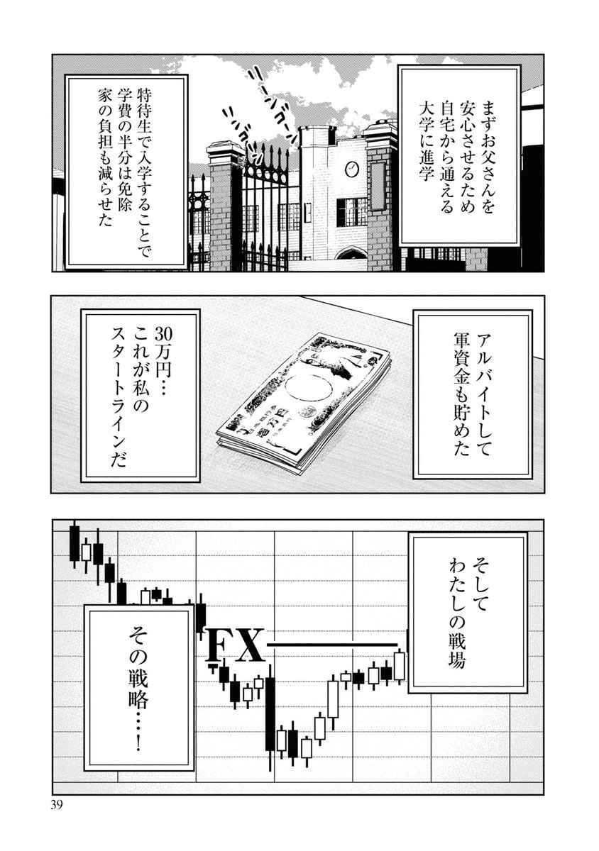 主人公のくるみが中学生だった2008年秋、母親がFXで大失敗し、2000万円の赤字を出してしまった。母親はだんだんと様子がおかしくなり、その後自殺してしまう。この事件をきっかけにFXを知ったくるみは、自らもFXを始め、母親が作った2000万円の損失を取り返そうと決意。大学2年生となった2014年2月、ついに取引を始めるが……。丁寧な状況解説や専門用語の説明、マンガならではの表現により、FXに詳しくない人でもくるみと同じような感覚で手に汗握る相場変動が体験できる。月刊コミックフラッパー(KADOKAWA)で連載中だ。アニメイト、ゲーマーズ、とらのあな、メロンブックスでは購入特典も用意された。