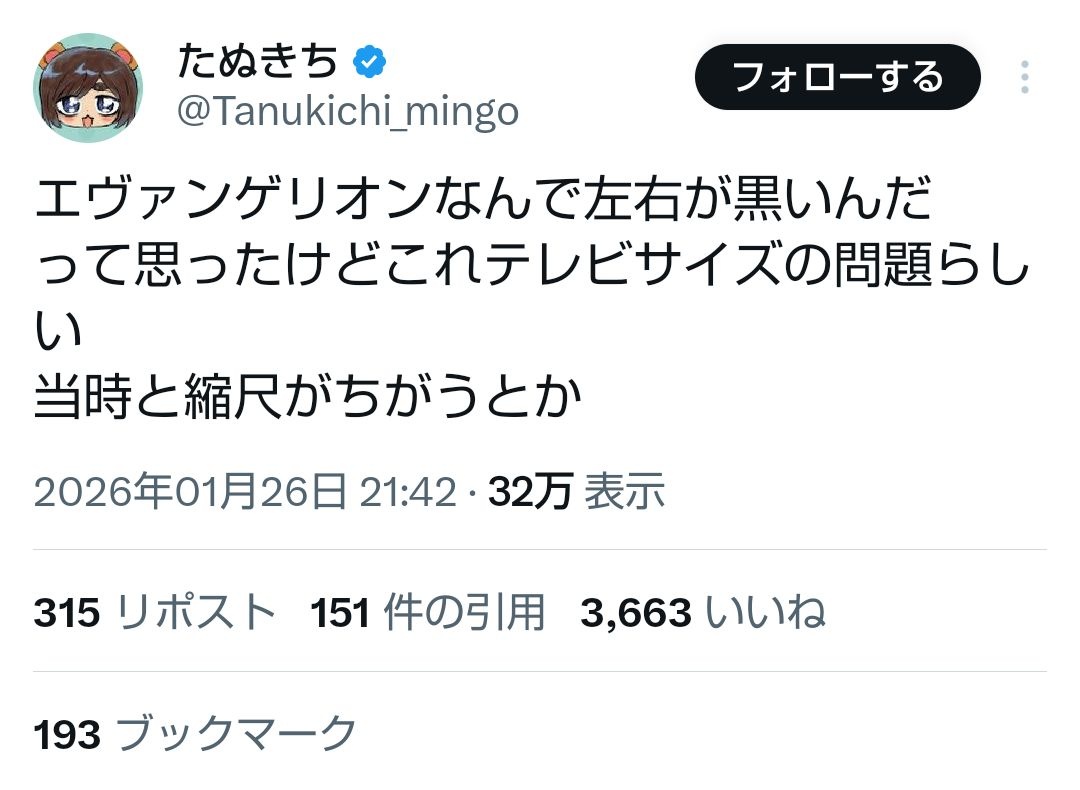 画面に黒帯があるだけで視聴を中止するという層が結構な割合でいるらしいがまったく理解ができん