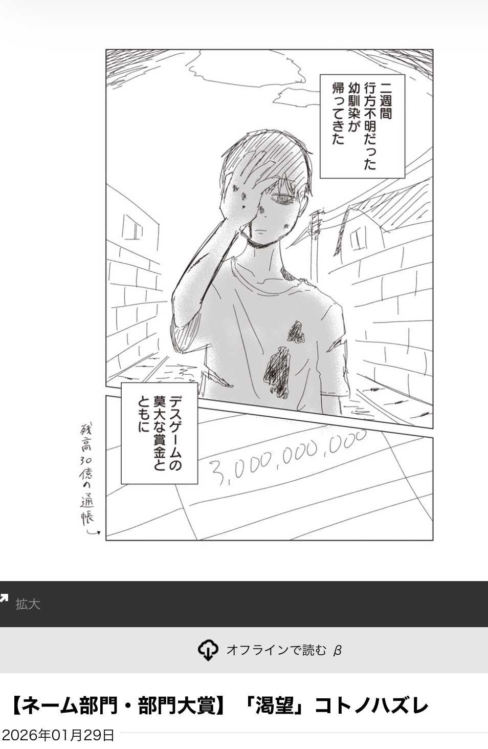 デスゲーム(?)に参加して大金を振り込まれた後のお話ということで、デスゲームってなんやねんと拒絶反応
