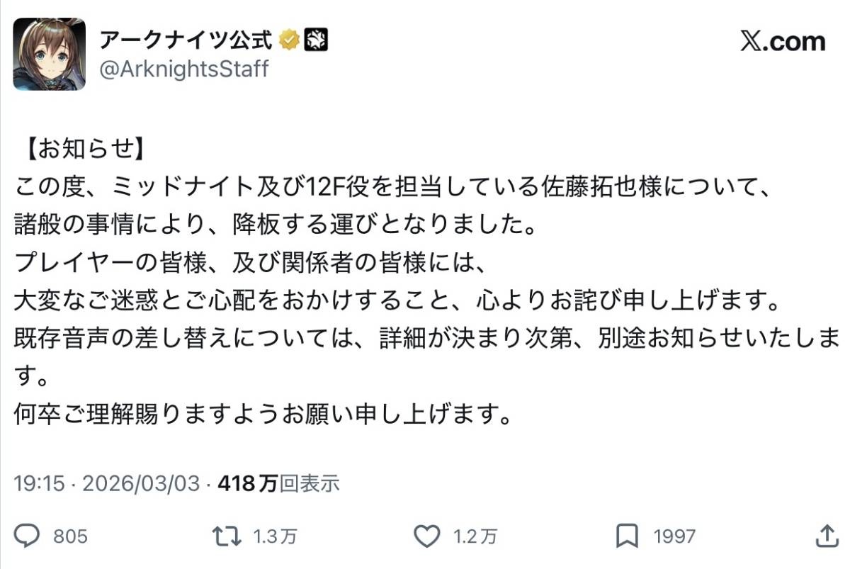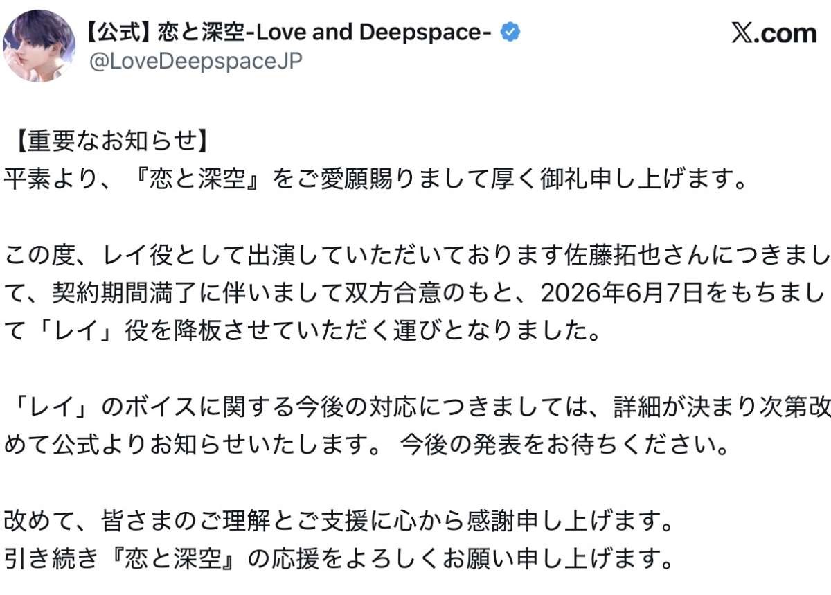 契約書の横紙破りでもしない限りはどの声優起用しようとクライアントの自由だと思うんだが・・・