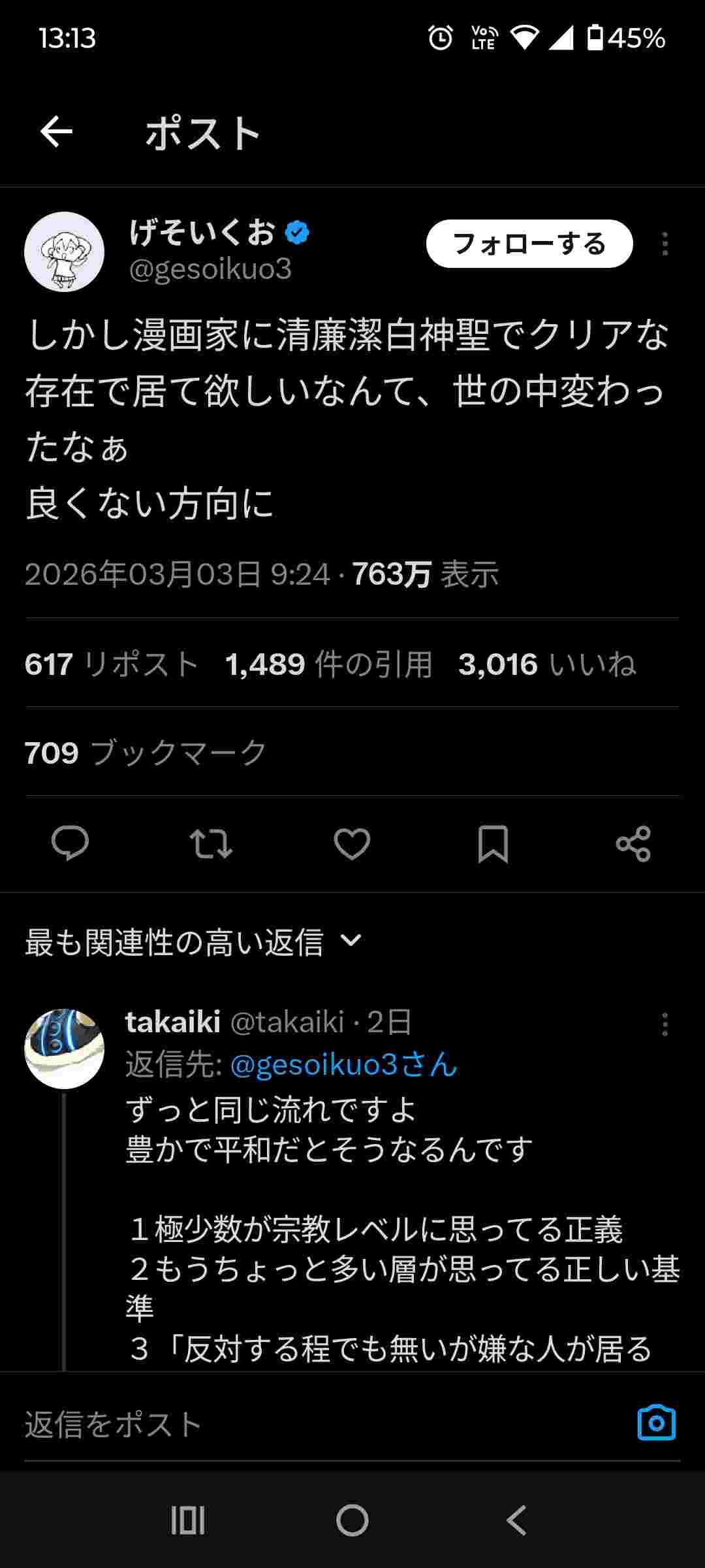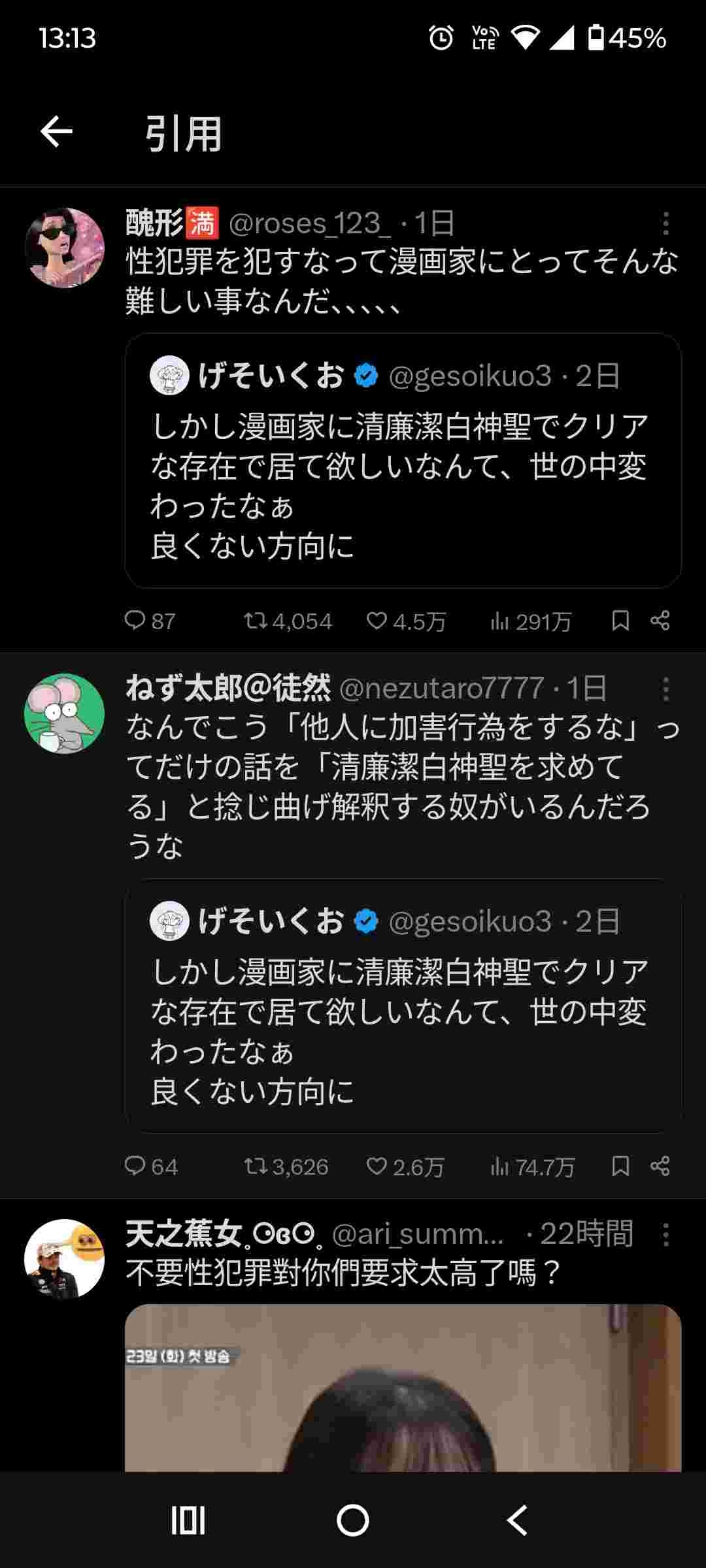 げそさんは男尊女卑っぽいツイートはよくしてたような気がするけど記憶違いならすまん