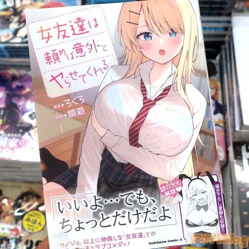 鏡遊氏のライトノベルを、ろくろ(=明石六露)氏がコミカライズされ、コミックNewtypeで連載中の「女友達は頼めば意外とヤらせてくれる」1巻【AA】がアキバではもう出てる(公式発売日は10日)。