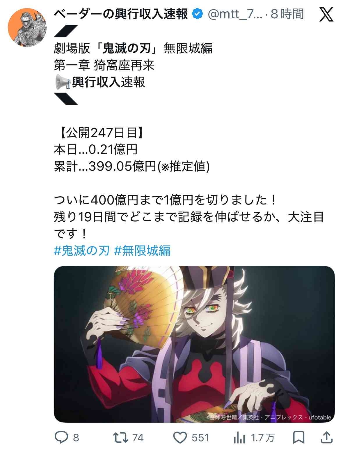 ようやったが猗窩座でこれやと童磨や兄上で400億は無理やろ