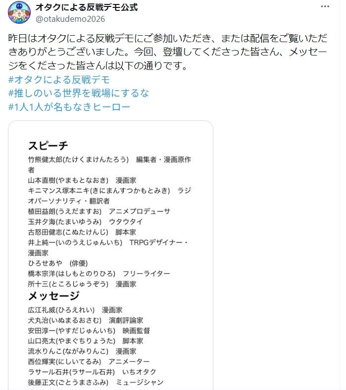 とんがり帽子のアトリエの作者なんて反イスラエル・反高市丸出しなのに不参加なのか、意外だな