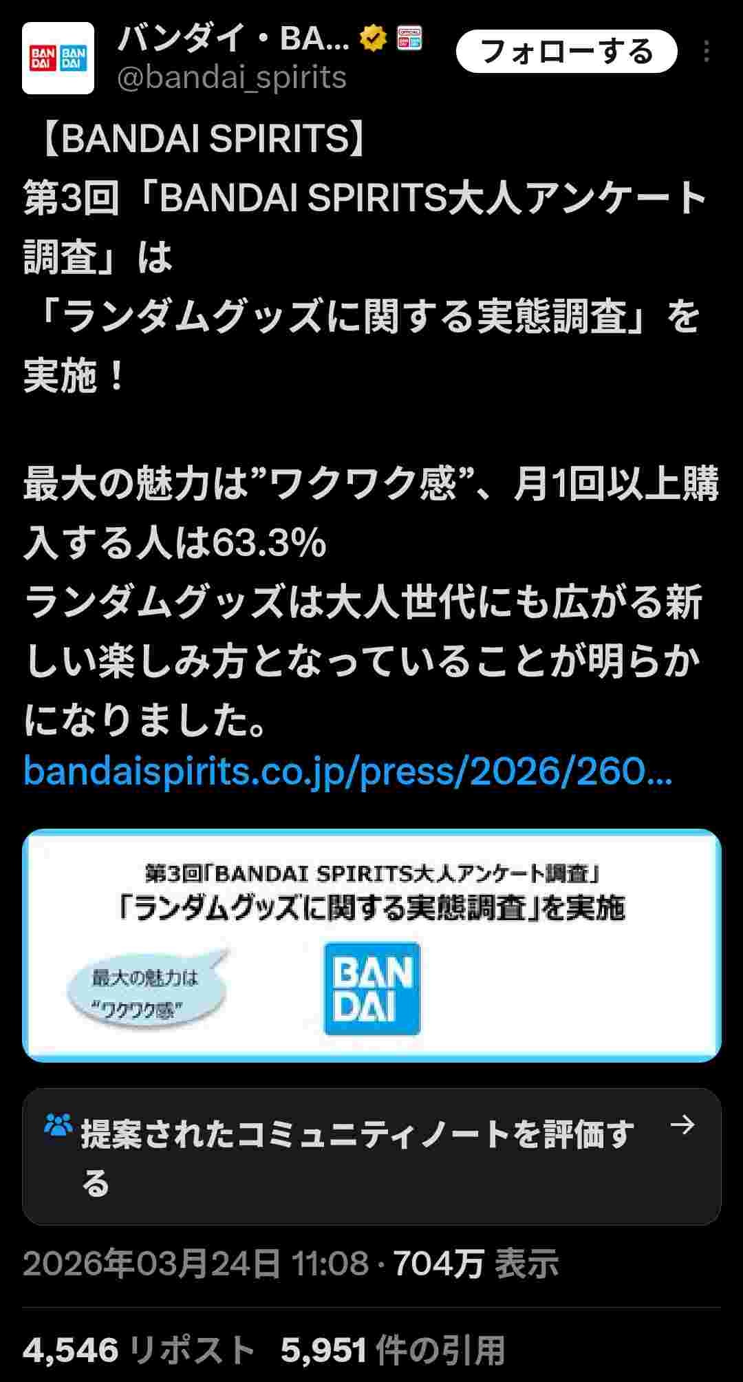 バンダイナムコがガチャの素晴らしさを発表し燃料に