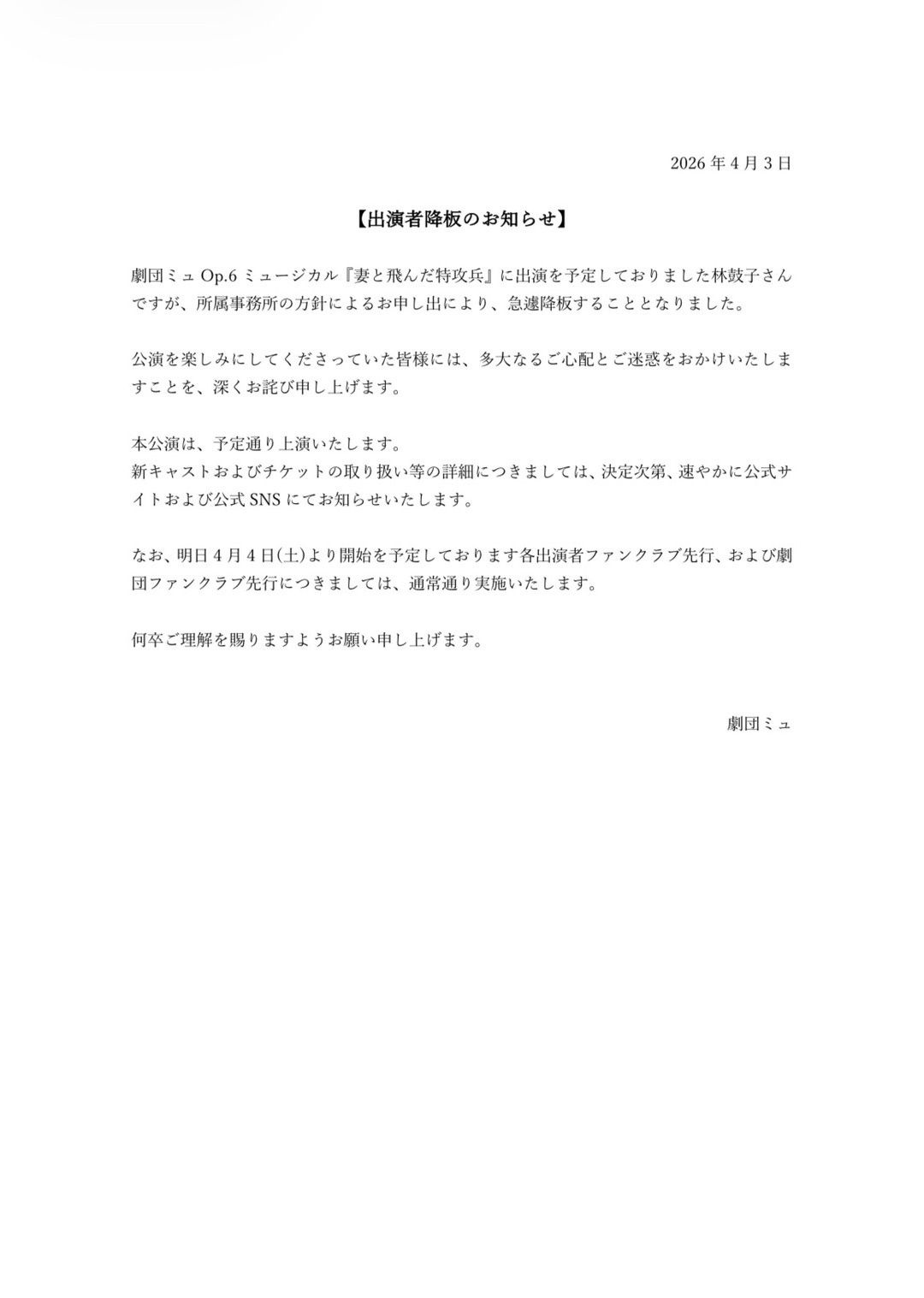 でもこんなウヨ臭い舞台は公演中止でいいよ